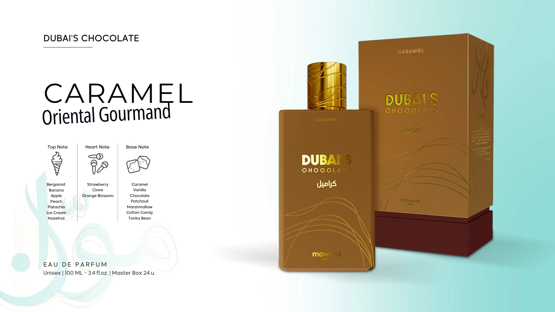 Linha Dubai’s Chocolate, inspirada pelo brilho dourado de Dubai, esta coleção reinventa o chocolate no universo da perfumaria refinada.