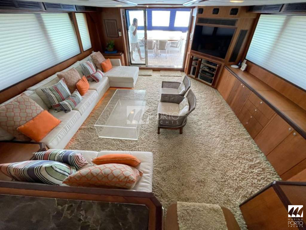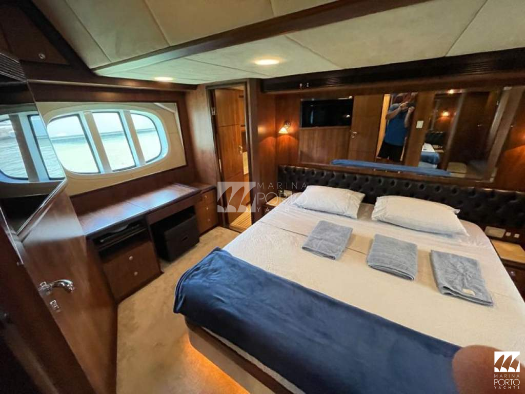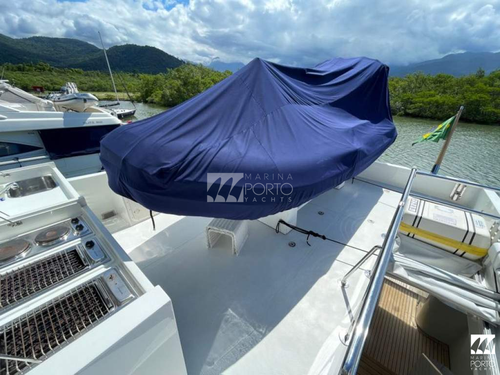 MCP 76 2009 2x Caterpillar 575Hp 1350Hrs Autonomia 3.000 milhas Consumo 64 litros/hora a parelha Bow/Stern Thrusters - Estabilizadores Naiad - 3º comando na praça de popa Combustível: 10.450L Água: 3.200L Pessoas: 10 + 3Trip. Camarotes: 4 + 1 - Toaletes: 5 2x Geradores Onan 21,5 KVA 2.650 e 4.360 hrs Antena de TV por satélite Sky - Rádios VHF marítimos Linha completa e navegação Raymarine - 2x display 17" - 2x 15" - 1x 12" Quatro câmeras (motores / proa / popa) Dessalinizadores x 2 capacidade 250 lts/hora ,2 membranas, e o segundo 180lts/hora Tanque de água séptica 2 tanques total 350lts, com tratamento com bactéria Tanque água servida(chuveiro) 1000 lts 2x estabilizadores wesmar hidráulicos/eletrônicos Guincho de âncora maxwell 4500 hidráulico / corrente 100 mts 2x cabrestantes de popa maxwell BB/BE 2500 Grua no fly bridge 1100 k hidráulico R$consulte
