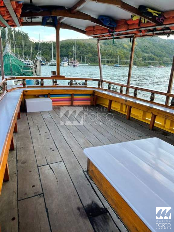Escuna de madeira 44 pés - Ano construção 2012 Cajaiba , Camamu Bahia Motorização: MWM229 aspirado 8077.5hrs 2x Baterias auxiliares/moura Capacidade: 48 pessoas + 2 tripulantes Tamanho: 13 metros e 30 cm Boca: 4.15 Comprimento: 13,30 Capacidade tanque Diesel: 120 litros Capacidade Tanque água doce: 40 litros Rádio vhf WC Manual Som ambiente com 4 caixas marinizadas BSA - AW4 cor preta R$ consulte