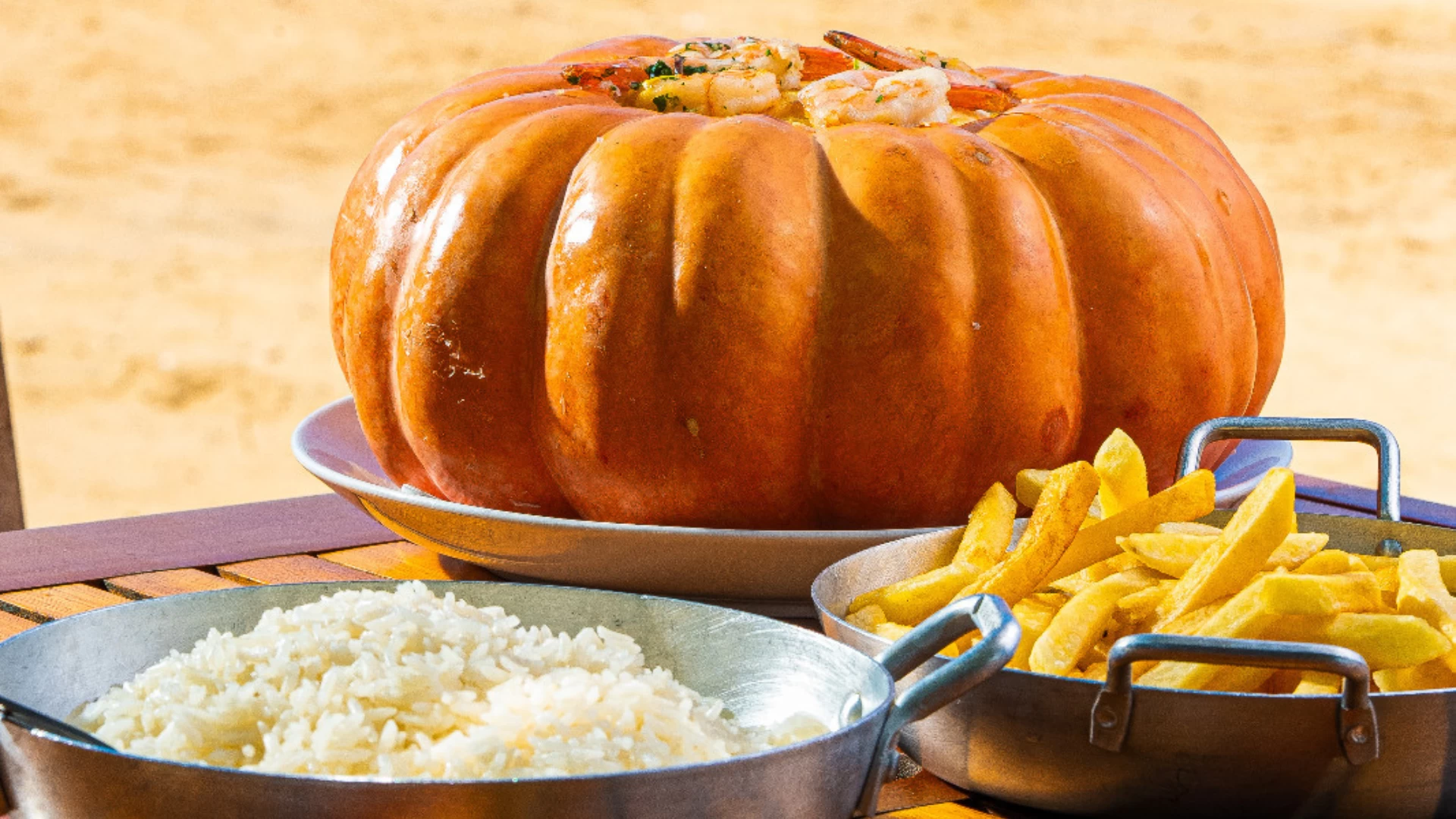 O camarão na moranga do Porto do Engenho é cremoso, bem temperado e servido com arroz soltinho e fritas crocantes. Um prato que conquista no sabor e na apresentação – perfeito para compartilhar momentos especiais à beira-mar.