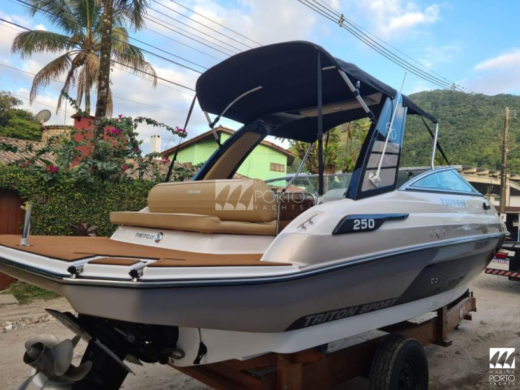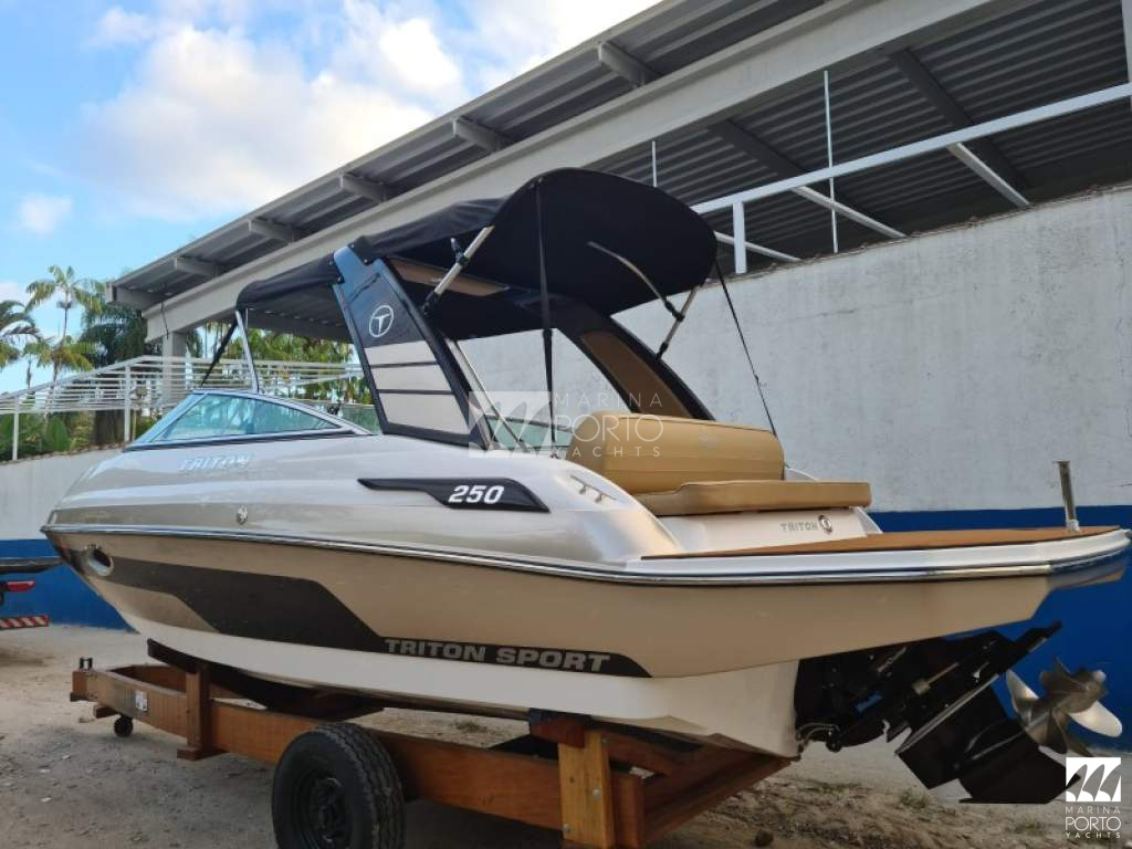 Triton 250 Sport Open 2022 Mercruiser 250 hp Gasolina 45hrs Bússola, GPS, Rádio VHF Rabeta Alpha One Bomba de Porão com automático Filtro de areia Bateria extra Carreta de Encalhe em Madeira Chicote Elétrico Chave Geral Direção Hidráulica Sanitário automático Toldo em Alumínio Volante italiano em couro Âncora com guincho elétrico Churrasqueira Teka EVA Targa, Capota Entrada com Guarda sol R$ consulte
