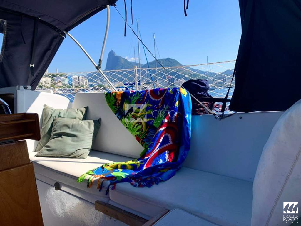 A embarcação é um veleiro Trinidad 37 (37 pés), mesmo projeto do O’day 37 americano, um clássico e autêntico “blue water” (idealizado para travessias oceânicas), portanto confortável e seguro, homologado para até dez pessoas e mar aberto. O barco conta com banheiro, geladeira, agua doce e energia elétrica. A cabine é espaçosa e confortável caso alguém queira descansar. Tem uma prainha de popa com escada para facilitar o acesso ao mar. R$ consulte