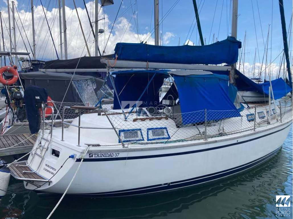 Veleiro Trinidad 37 construção 1995 Volvo Penta de 28 HP, com 2200 horas Jogo de velas: 01 Mestra e 01 Genoa Dracon da Diamond Sail Makers Toldos rebatíveis fixos e escada de popa em aço inox Fogão Semer de 02 bocas com forno Ampla geladeira com freezer Paiol para botijão de gás de 5,0 Kgs. TV Flat LG 32 polegadas Stereo com caixa de som JBL Rádio VHF da Apelco ( modelo 5160 ) com antena Sailor Estação de vento nova (completa). Piloto automático Autohelm ST4000 . Profundímetro. Agulha magnética da Sunto. Inversor de energia Hayonik (de 12 para 127 V). Voltímetro digital. Baterias: 02 de 100 AH e 02 de 150 AH. 02 placas solares 150 W cada uma com controlador de carga MPPT. Bote inflável de 2,0 m com remos totalmente novos e motor de popa de 3,3 HP’s. Duas cadeiras de praia e um Stand Up totalmente novo R$ consulte