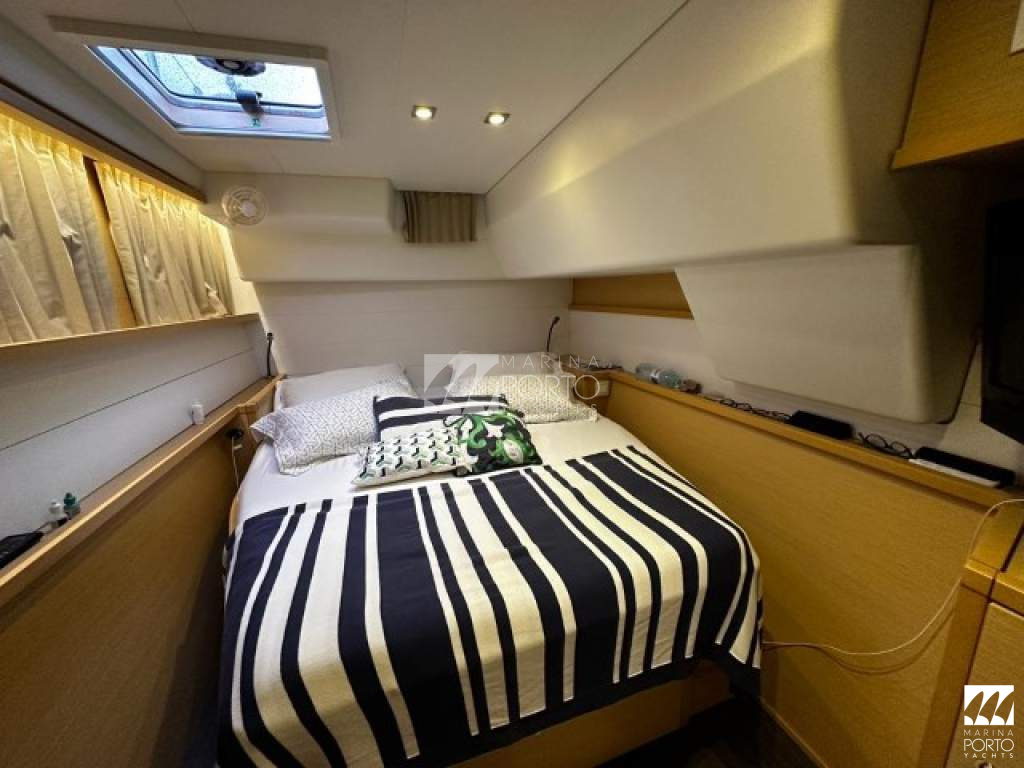 Lagoon 450 Fly - 2013 2x Yanmar 54 hp com rabetas SD60 Layout: 3 suítes, sendo 1 c/ escritório 2x rádios VHF, GPS, radar, estações e AIS, c/ repetidores 2 pilotos automáticos Ar condicionado Gerador Onan 12 KVA. Sistema Epirb ACR Globalfix V4 GPS 2 Hélices folding 3 pás Velas Mestra square top e Genoa com enrolador Gennaker Northsails com enrolador Microondas, máquina de lavar louças e lavar e secar roupas 2 geladeiras 12V e um freezer 12V Televisão 32” com lift na sala e tv 26” na suíte master Sky, sistema amplificador de sinal de celular e StarLink Home Theater e sistema de som Bose Capotaria completa com fechamentos laterais. 4 catracas elétricas Inversores 2.500W 220V e 1500W 110V. Placas solares (4 x 120W) e controlador digital. Dessalinizador 220V e 12V – 100 litros/hora Tanques 600L de água e 1.000L Diesel Sistema de água doce e salgada pressurizado na proa. R$ Consulte