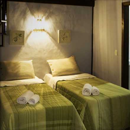 SUÍTE CASTELHANOS Projetada para até quatro pessoas, a suíte Castelhanos é ideal para a família. Possuí um mezanino com cama de casal e mais duas camas de solteiro na área de baixo. Confortável e ampla a suíte dispõe de: • Cama Box de casal com colchão de mola • Duas camas Box de solteiro com colchão de mola • Frigobar • Ar-condicionado • Ventilador de teto • Dois aparelhos de TV 20' • Canal interno de DVD • Secador de cabelo • Sacada privativa com vista para a mata nativa.