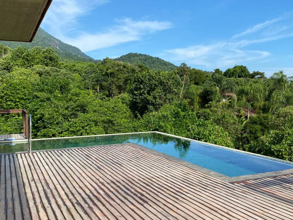 ÁREA GOUMERT COM CHURRASQUEIRA E FORNO DE PIZZA, PISCINA COM BORDA INFINITA, JACUZZI E TERRAÇO COM VISTA MAR E ILHA DE ALCATRAZES.