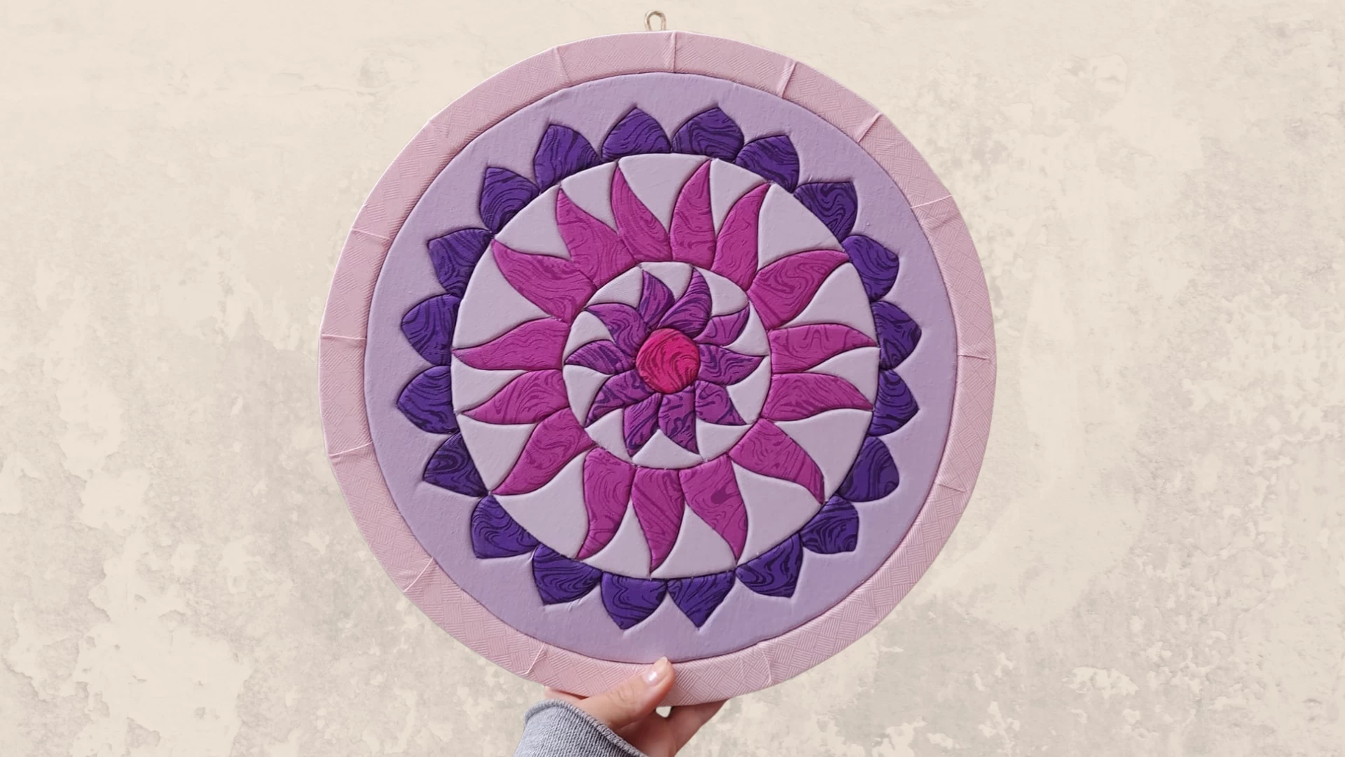 Mandala artesanal redonda de 35 cm, criada em patchwork embutido, com uma combinação encantadora de tons de rosa, lilás e roxo. Cada cor se conecta em perfeita harmonia, formando um desenho que inspira serenidade, intuição e feminilidade. Feita à mão com riqueza de detalhes, essa mandala é ideal para quem busca uma peça única e cheia de energia positiva. Um toque artístico que transforma qualquer ambiente com beleza, leveza e significado.