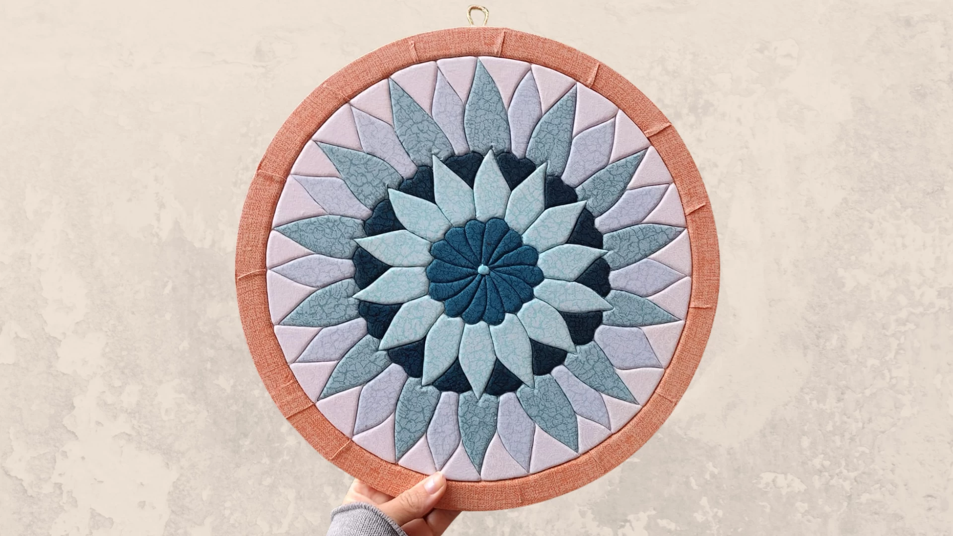 Mandala artesanal redonda de 35 cm, feita à mão em patchwork embutido, com uma paleta suave que vai do verde-água ao verde escuro. As nuances se unem em perfeita harmonia, criando um efeito visual que transmite calma, equilíbrio e conexão com a natureza. Ideal para quem busca uma peça artesanal única, capaz de transformar o ambiente com serenidade e boas energias. Uma arte delicada que reflete beleza, leveza e paz interior.