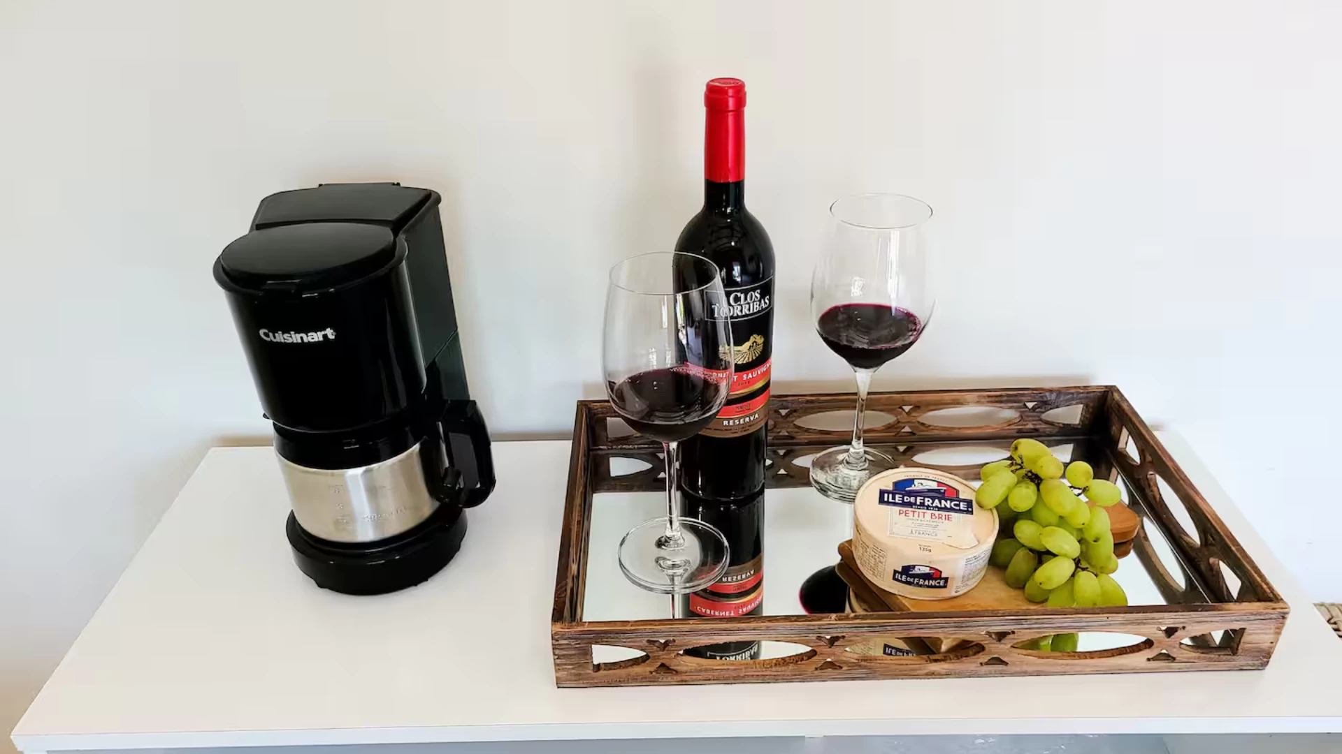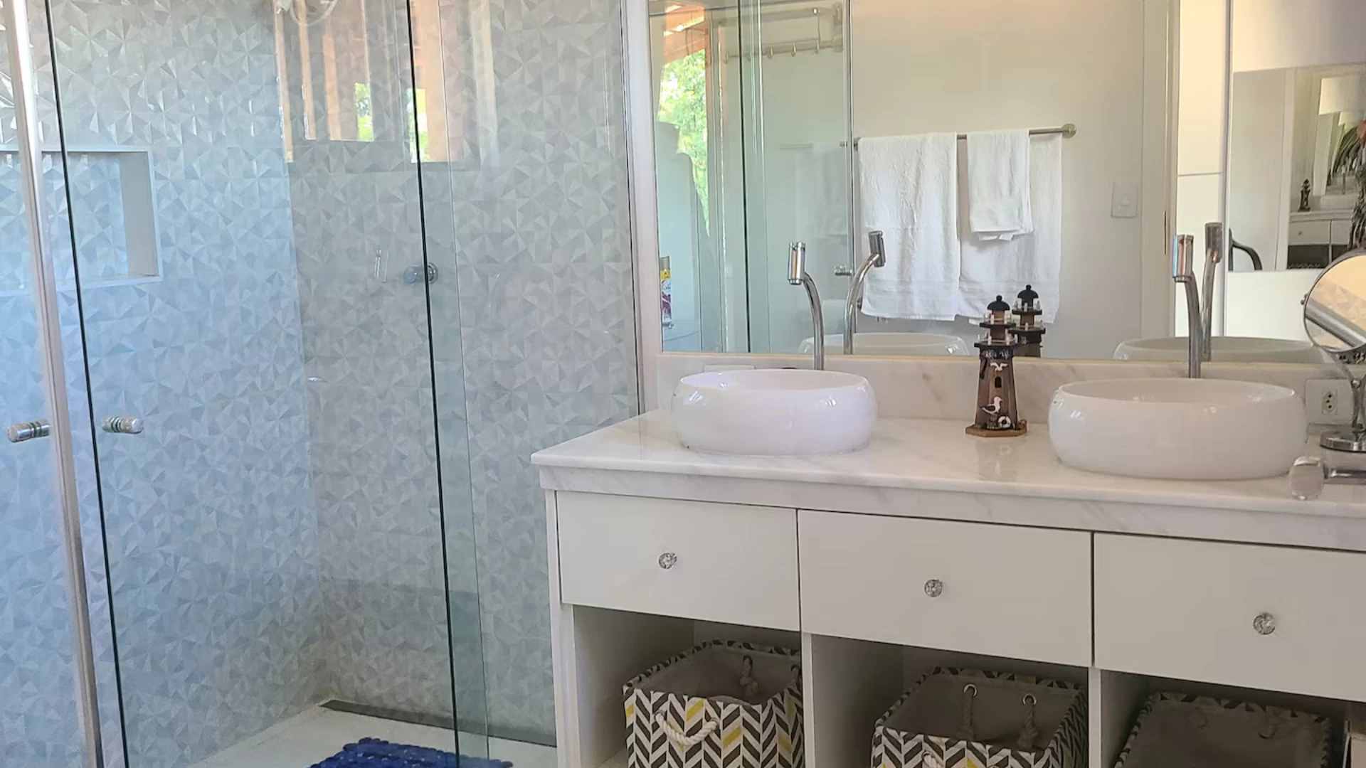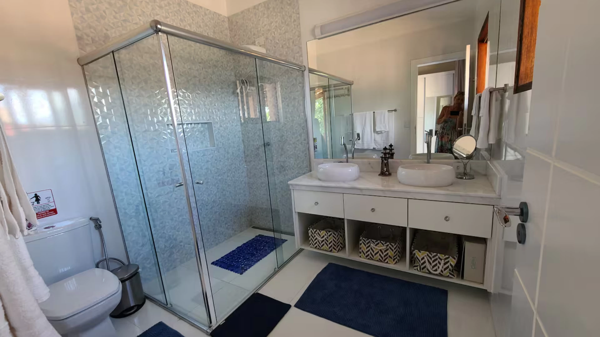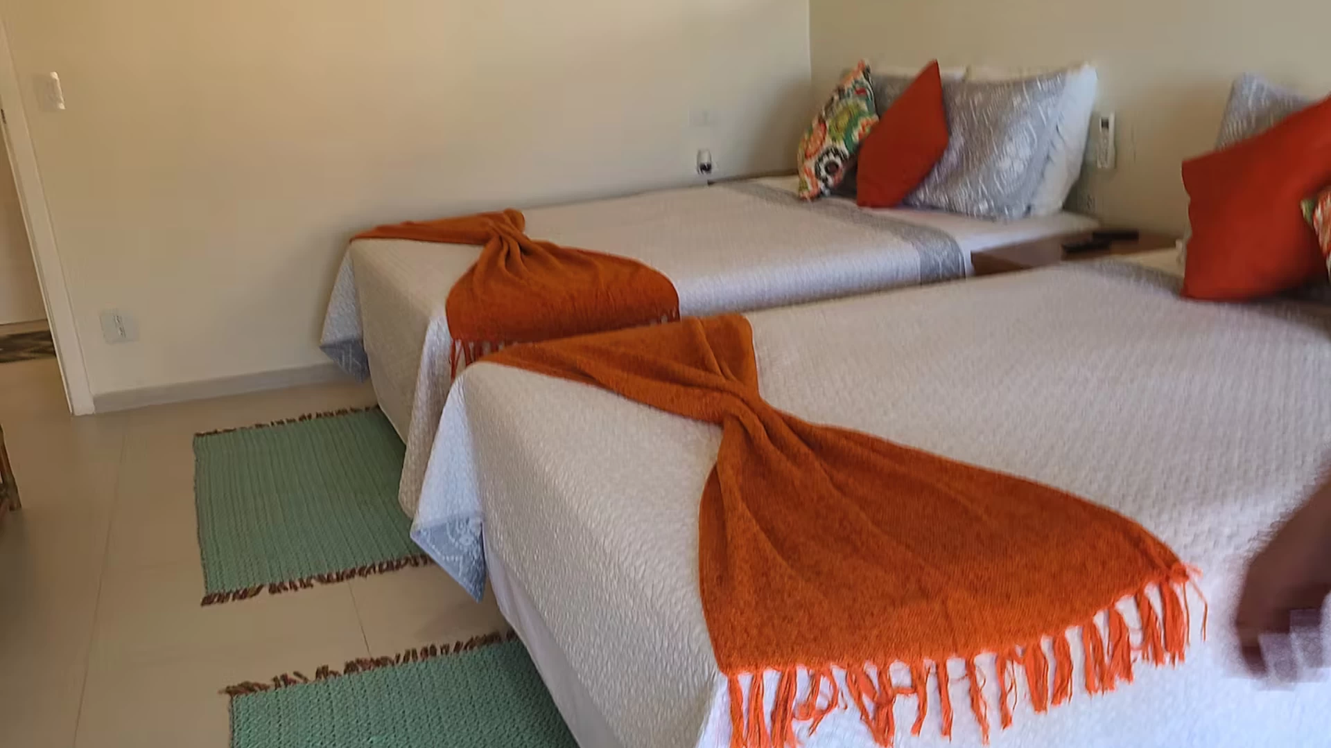 A suite e super espaçosa, com pé direito alto, duas lindas e confortáveis camas Queen size, rede na varanda, blackout na porta, frigobar, máquina nespresso, ar-condicionado frio e quente, ventilador de teto, Smart TV/Roku, guarda-roupas e secador de cabelo.