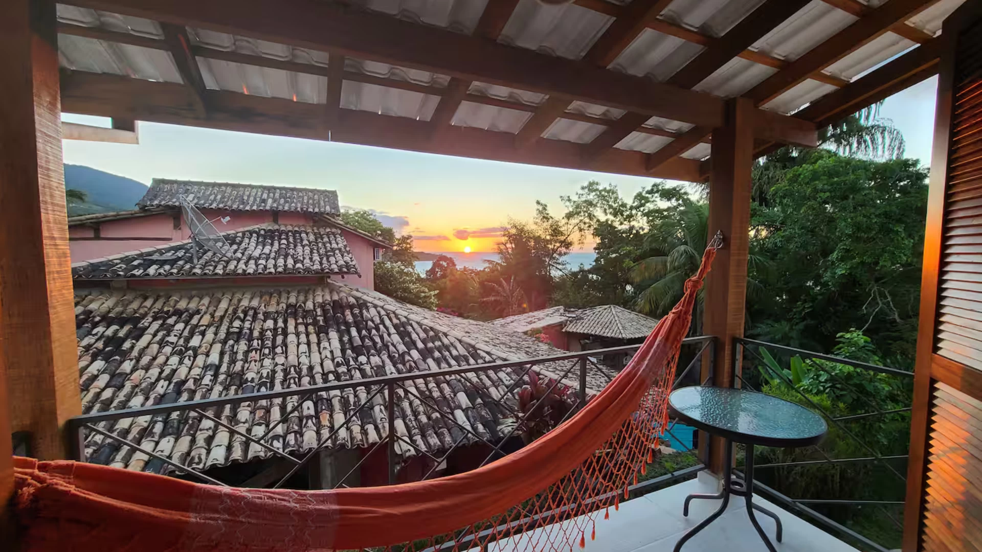 Lindíssima e espaçosa suite com vista para o mar e com fantástico pôr do sol. Perfeita para descanso ou trabalho remoto (Internet fibra 100MB). Excelente localização, podendo ir andando para três das melhores praias da ilha: Julião, Feiticeira, Praia Grande e próximo de outras populares como Curral, Veloso e Portinho. Também perto da cachoeira dos 3 tombos. Nas proximidades temos deliciosos restaurantes, padaria, supermercado, farmácia e loja de conveniência.