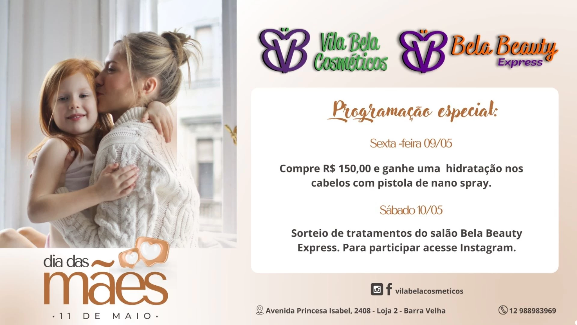 Dia das Mães na Vila Bela Cosméticos e Bela Beauty Express!