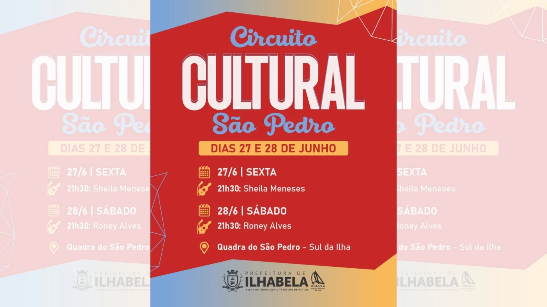 A quadra do bairro São Pedro será palco de mais uma edição gratuita do Circuito Cultural de Ilhabela no próximo fim de semana (27 e 28 de junho), a partir das 19h.