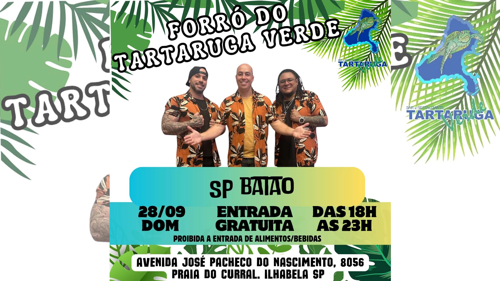 Vem que esse domingo, 28/09, tem novidade no Forró do Tartaruga Verde?! Teremos SP Baião alegrando a nossa noite! Vem que abrimos as 9h e o forró começa as 18h e vai até as 23h, com entrada gratuita a noite toda! Estamos te esperando!!!