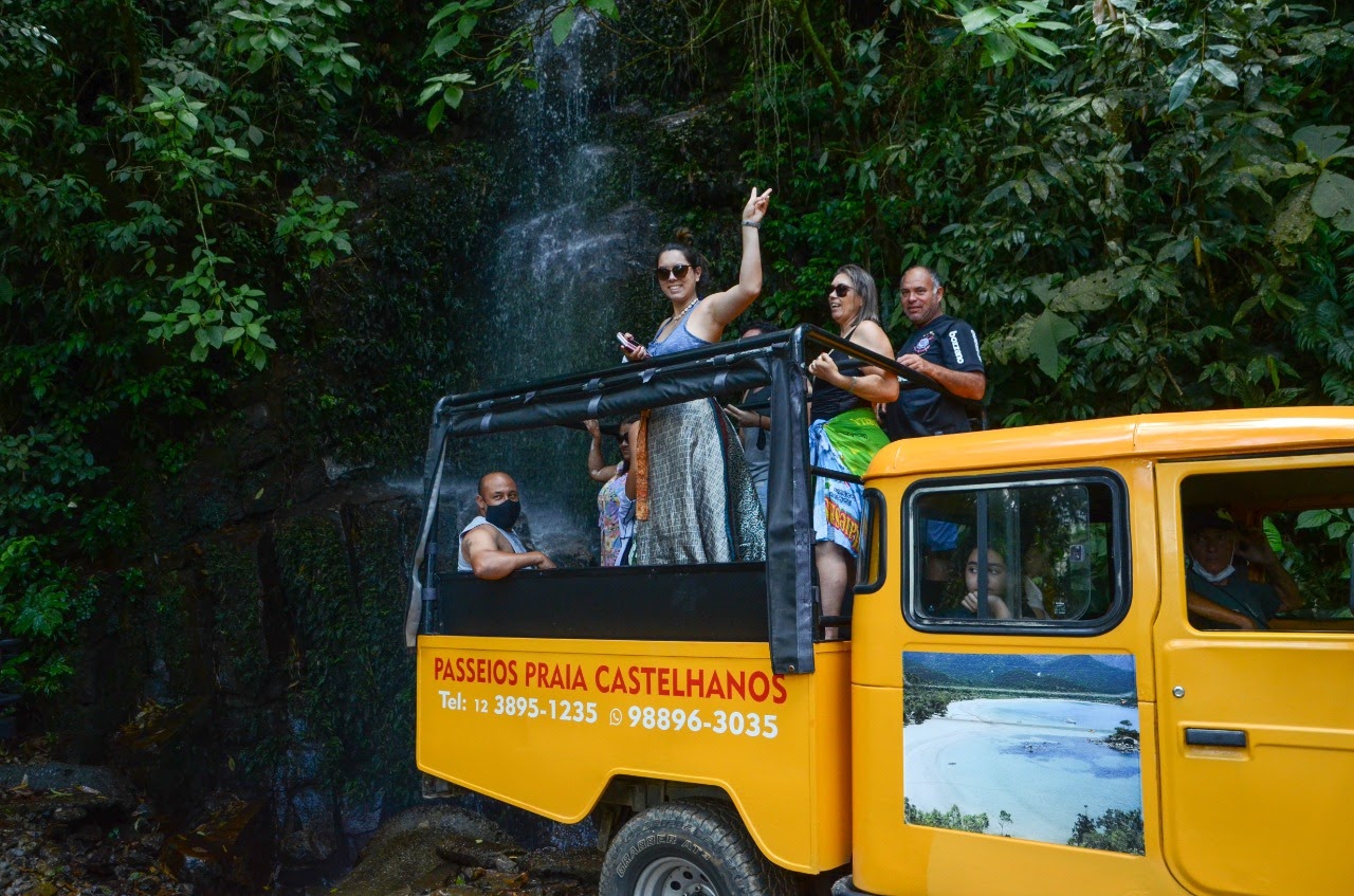 Passeio ida e volta de Jipe para a Praia de Castelhanos O passeio para a praia de Castelhanos ida e volta em Jipe 4x4 é uma experiência única. O percurso até chegar a Praia de Castelhanos, faz parte desse passeio incrível, aonde vocês vão trafegar pelas curvas sinuosas e esburacadas da Estrada Parque de Castelhanos, com muita emoção e segurança em nosso Jipe 4x4. É possível conhecer o Parque Municipal das Cachoeiras com trilhas com nível de dificuldade leve e médio. Também é possível conhecer a Cachoeira do Gato, com a contratação de um guia local, através do Turismo de Base Comunitária, mas a trilha já é de nível médio a forte de dificuldade. Chegando na praia de Castelhanos, você vai encontrar toda a infraestrutura para o turista, com restaurantes e bares que oferecem deliciosas refeições e bebidas (caso aprecie bebida alcoólica, experimente a caipirinha de folhas de mixirica).