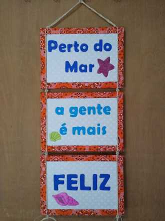 Quadro Perto do Mar a gente é mais feliz! Artesanato em mdf Peças de artesanato revestidas com tecido e aplicação da técnica de Patchwork embutido. Sob encomenda Artes da KK
