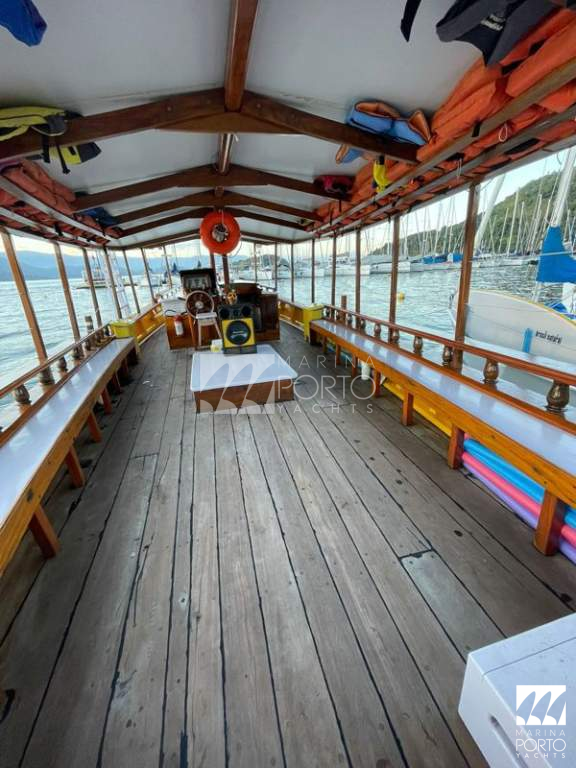 Escuna de madeira 44 pés - Ano construção 2012 Cajaiba , Camamu Bahia Motorização: MWM229 aspirado 8077.5hrs 2x Baterias auxiliares/moura Capacidade: 48 pessoas + 2 tripulantes Tamanho: 13 metros e 30 cm Boca: 4.15 Comprimento: 13,30 Capacidade tanque Diesel: 120 litros Capacidade Tanque água doce: 40 litros Rádio vhf WC Manual Som ambiente com 4 caixas marinizadas BSA - AW4 cor preta R$ consulte
