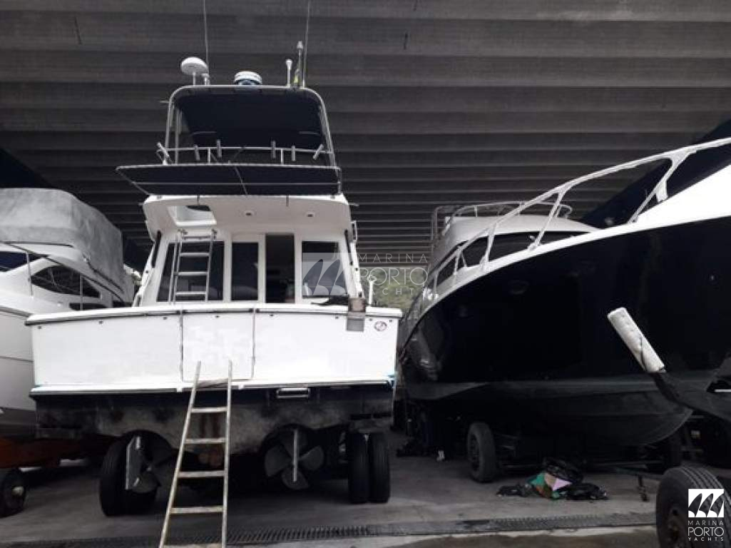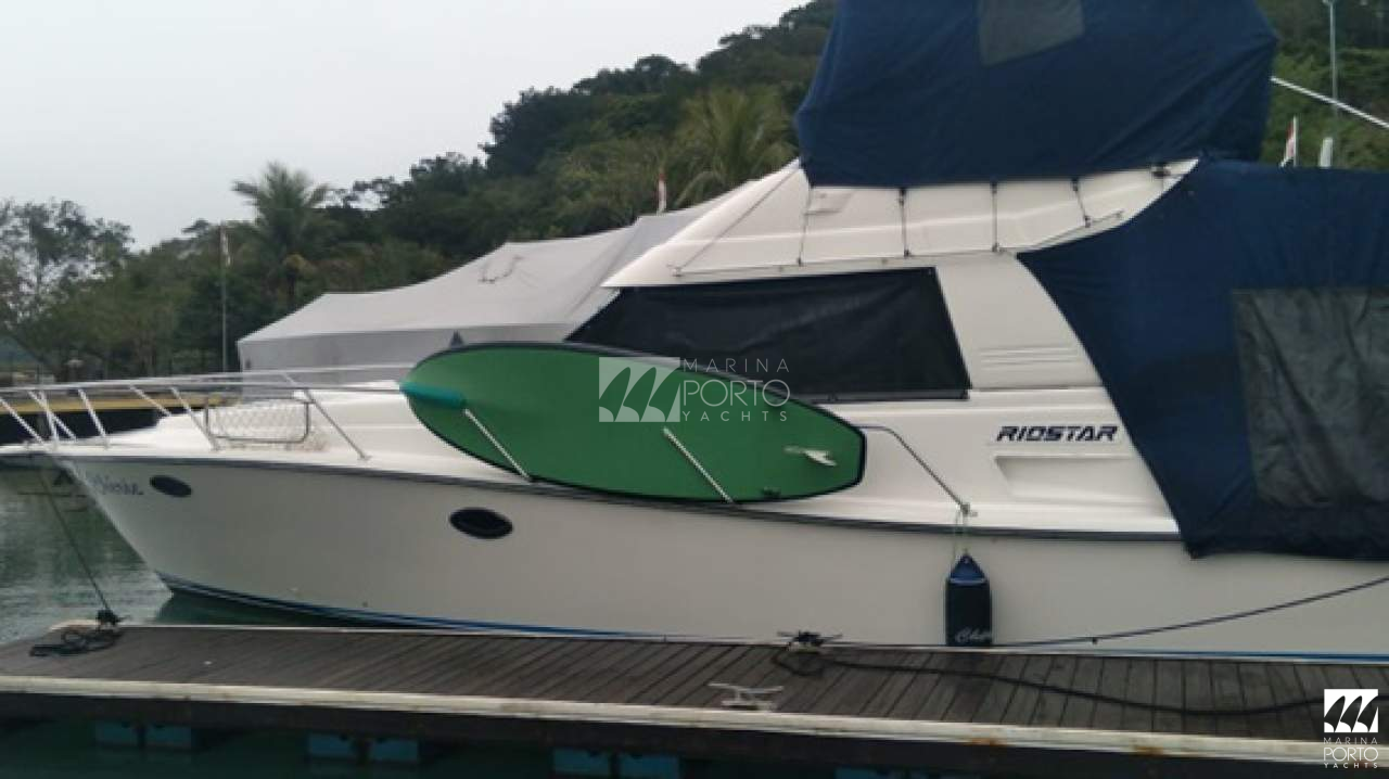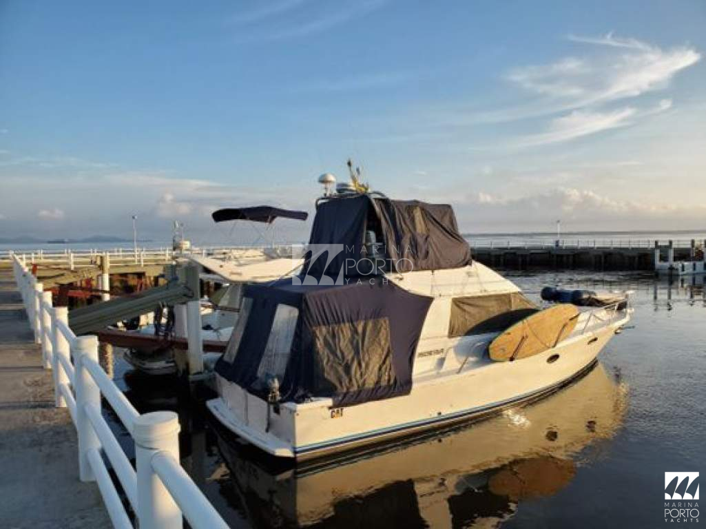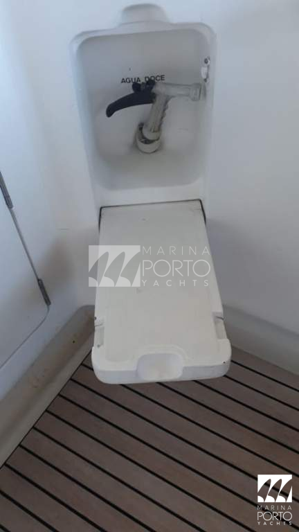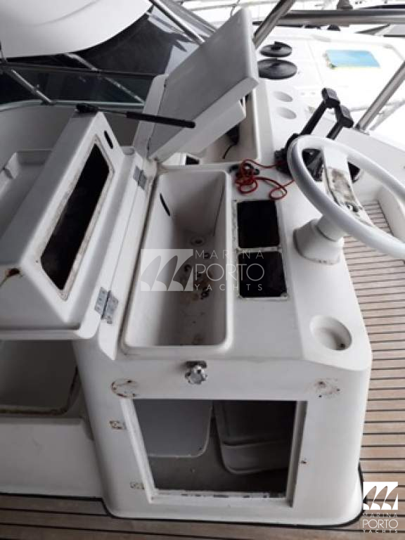 RIOSTAR 37 – ano 1998 Motores Catterpillar 3116 com 1200 horas Gerador Quicksilver 8 Kva Guincho hidráulico 2 Aparelhos de ar condicionado Boiler elétrico e com trocador de calor com motor – 40 litros Torneiras com misturador de água quente nas pias do banheiro e cozinha, e na popa Bomba de água doce e salgada com pontos distintos na praça de popa 3 bombas de porão –1 na popa e 2 na proa Holding tank com 40 litros Geladeira 12 Volt Geladeira 110 Volt Carregador de baterias Fogão, de indução portátil de 2 bocas ELETROLUX ICP30 Forno e Micro Ondas Spicy Inversor 220/110/12 Volts 4 baterias 150 A Piloto automático FURUNO Radar FURUNO 2 GPS plotter Garmin 2 radios VHF – Raymarine e 2 Televisões Toca para o Fly Capa para Praça de Popa possibilitando o uso com chuva Depósitos na praça de popa e no fly Teka natural na praça de popa e no fly R$ consulte