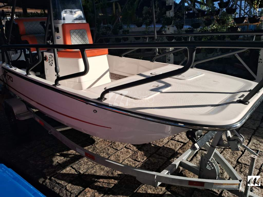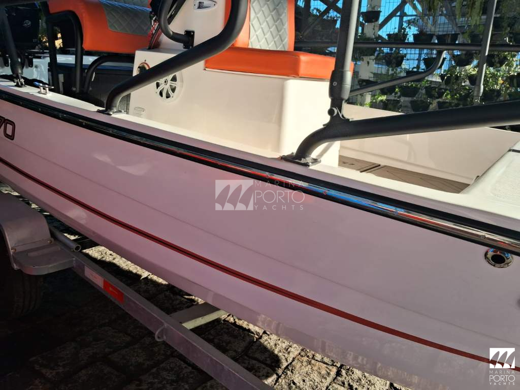 Murano - Rovercat 170 Mercury Outboards 50 ELPTO 2T 100% Fibra de Vidro - Comp.5,1m x Boca 1,7m x Calado 0,50cm Banco piloto estrutura em aluminio, porta varas e estofamento Banco e encosto estofado da frente do console Bomba de Porão e Automatico Bujão de casco Porta copo Chicote original Murano Yachts Cunho de amarração Escada Telescopica 3 degraus Alto Falante Ancora Antena para Radio VHF Bussola Buzina Capota náutica estrututa aluminio e lona preta Carreta Rodoviaria Casco Insubmergivel - Preenchimento com Poliuretano R$ consulte