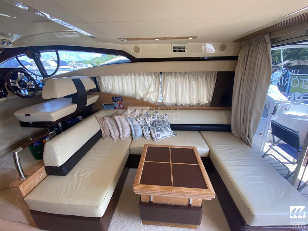 Modelo Azimut 50 pés Ano: 2015 2x Cummins 660hp - 536hrs Piso de Teka Painel com Bussola e GPS 1 Quarto de casal, 1 quarto com duas camas de solteiro Geladeira Microondas Pia 2 mesas internas, TV Sofá cama Valor: Consultar