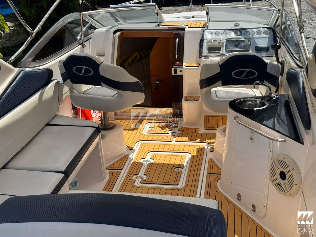 Phantom 26 pés Ano: 2009 Valor:R$ consulte Mercury Mercruiser Mirage plus Painel com GPS Piso de Teka Pequena área gourmet com pia