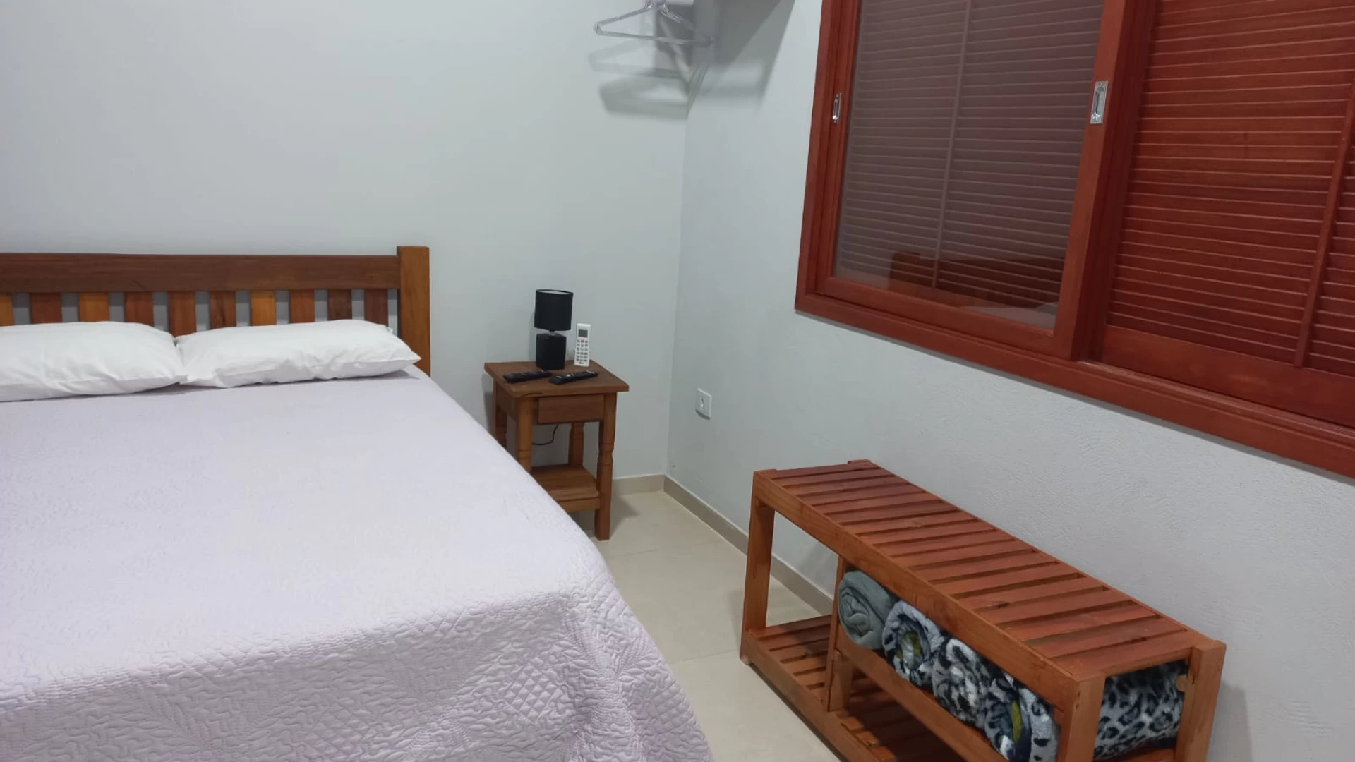 Mobiliado, com utensílios de cozinha, lavanderia, internet com wi-fi, televisão, ar condicionado e churrasqueira individual.