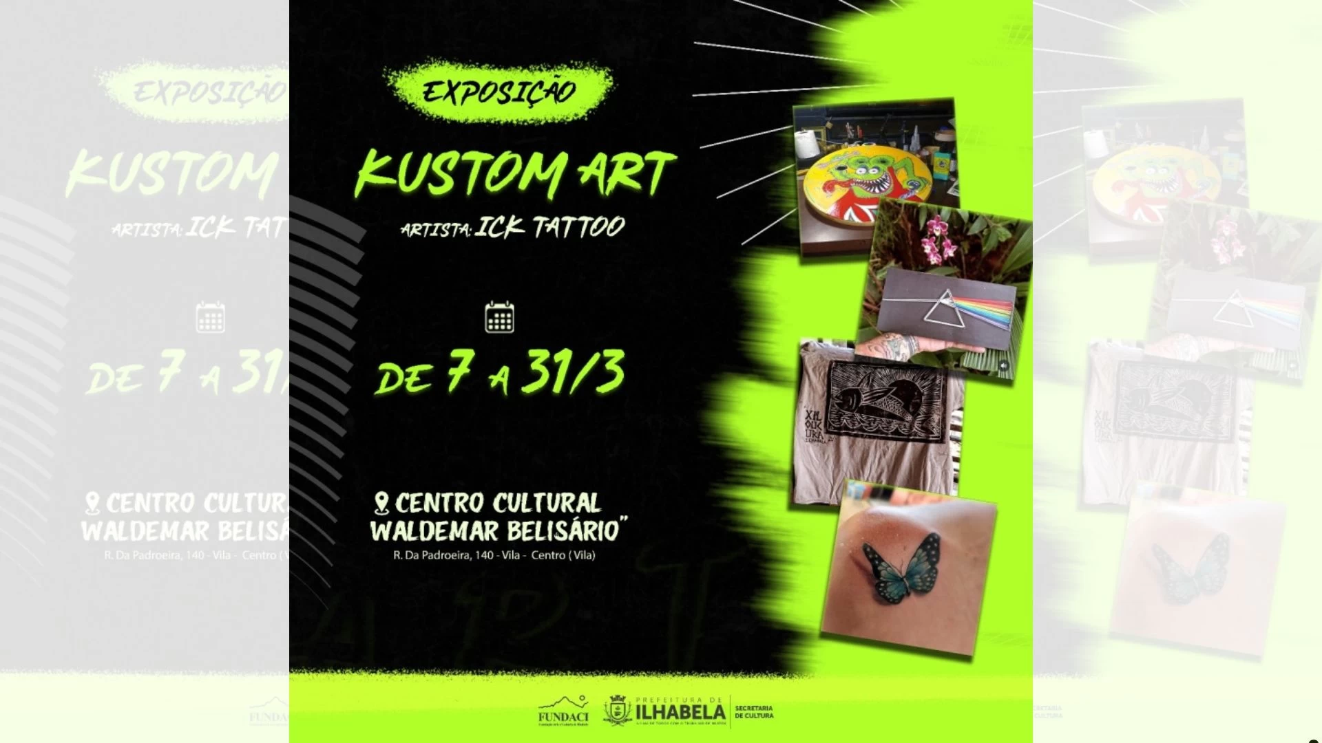 A exposição "Kustom Art", de Patrick Grohmann, apresenta um mix de artes inspiradas na cultura biker e caiçara, explorando técnicas como xilogravura, pintura, pinstriping e stringart, além de sua atuação como tatuador desde 1996. Residente em Ilhabela desde 2004, o artista busca a fusão entre arte rústica, espiritual e sustentável, utilizando materiais recicláveis em suas criações.