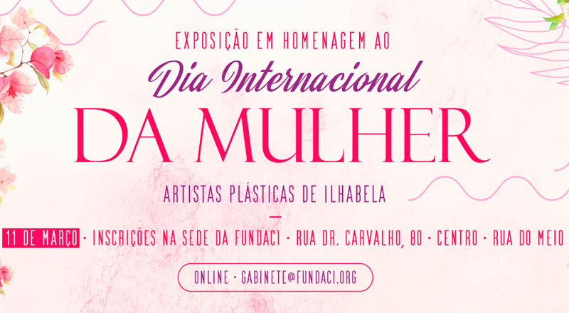 A Fundação Arte e Cultura de Ilhabela, por meio da Secretaria de Cultura e Prefeitura de Ilhabela, convida todos para prestigiarem a exposição em homenagem ao Dia Internacional das Mulheres, que será inaugurada dia 11/03 (sexta-feira) as 19h, no prédio sede da Fundação Arte e Cultura de Ilhabela, na rua Dr. Carvalho, 80- Centro (rua do meio).