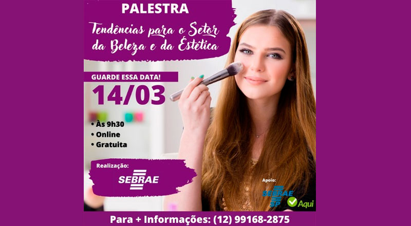 A Prefeitura de Ilhabela, em parceria com o Sebrae, realizará no próximo dia 14 de março, a partir das 9h30, a palestra online “Tendências para Setor da Beleza e da Estética”.