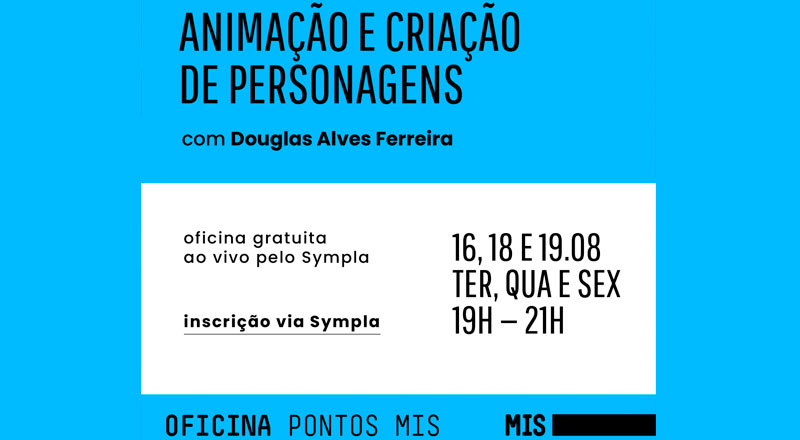 OS Pontos Mis em parceria com a Prefeitura de Ilhabela, oferecem gratuitamente, a oficina on-line sobre animação e criação de personagens, nos dias 16, 18 e 19 de agosto, das 19h às 21h.