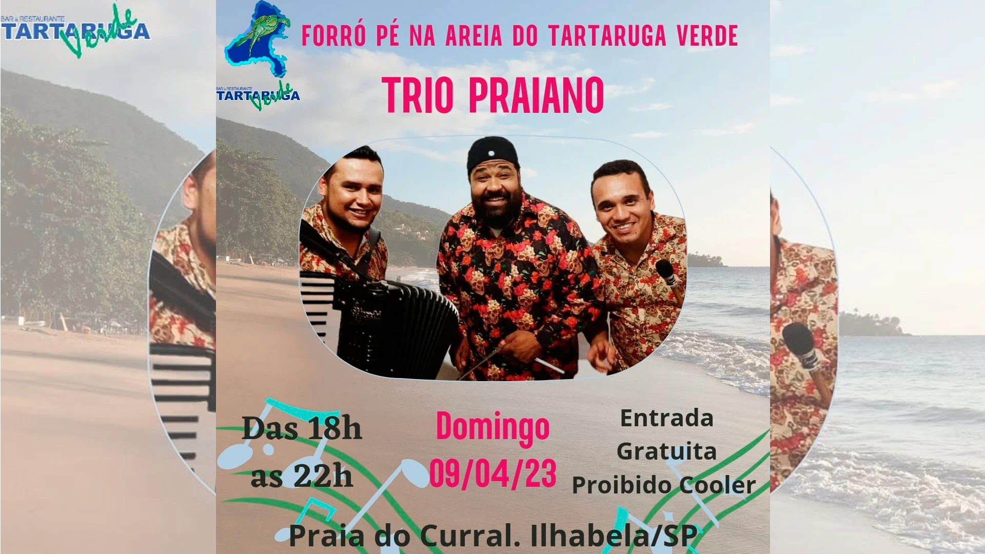 Vem que o @triopraiano vai agitar o forró pé na areia do Tartaruga Verde nesse domingo! Te esperamos para curtir a praia durante o dia, e de noite, das 18h as 22h tem o melhor do forró! Vem que vem! A entrada é gratuita!