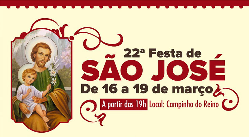 A Prefeitura de Ilhabela, por meio da Secretaria de Cultura e da Fundação Arte e Cultura de Ilhabela (Fundaci), apoia a promoção da 22ª Festa de São José, uma realização da Paróquia Nossa Senhora Aparecida, entre os dias 16 e 19 de março. O evento ocorrerá no Campo do Reino, bairro da capela do santo homenageado, sempre a partir das 19h.
