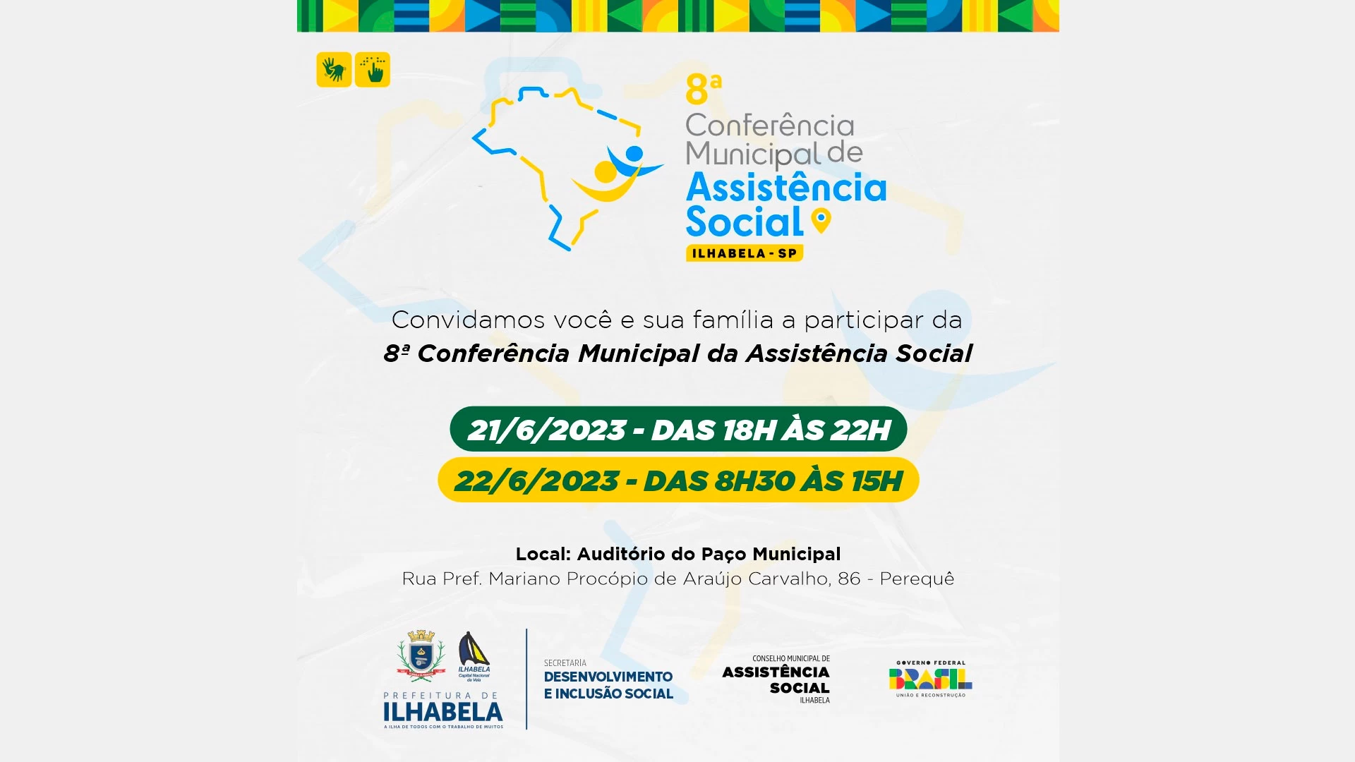 A Prefeitura de Ilhabela realiza nos dias 21 e 22 de junho a 8ª Conferência de Assistência Social, que este ano tem como tema "Reconstrução do SUAS: O SUAS que temos e o SUAS que queremos". O objetivo do evento é discutir a importância do Sistema Único de Assistência Social (SUAS) para a sociedade e apresentar propostas para melhorar e fortalecer o atendimento às pessoas em situação de vulnerabilidade.