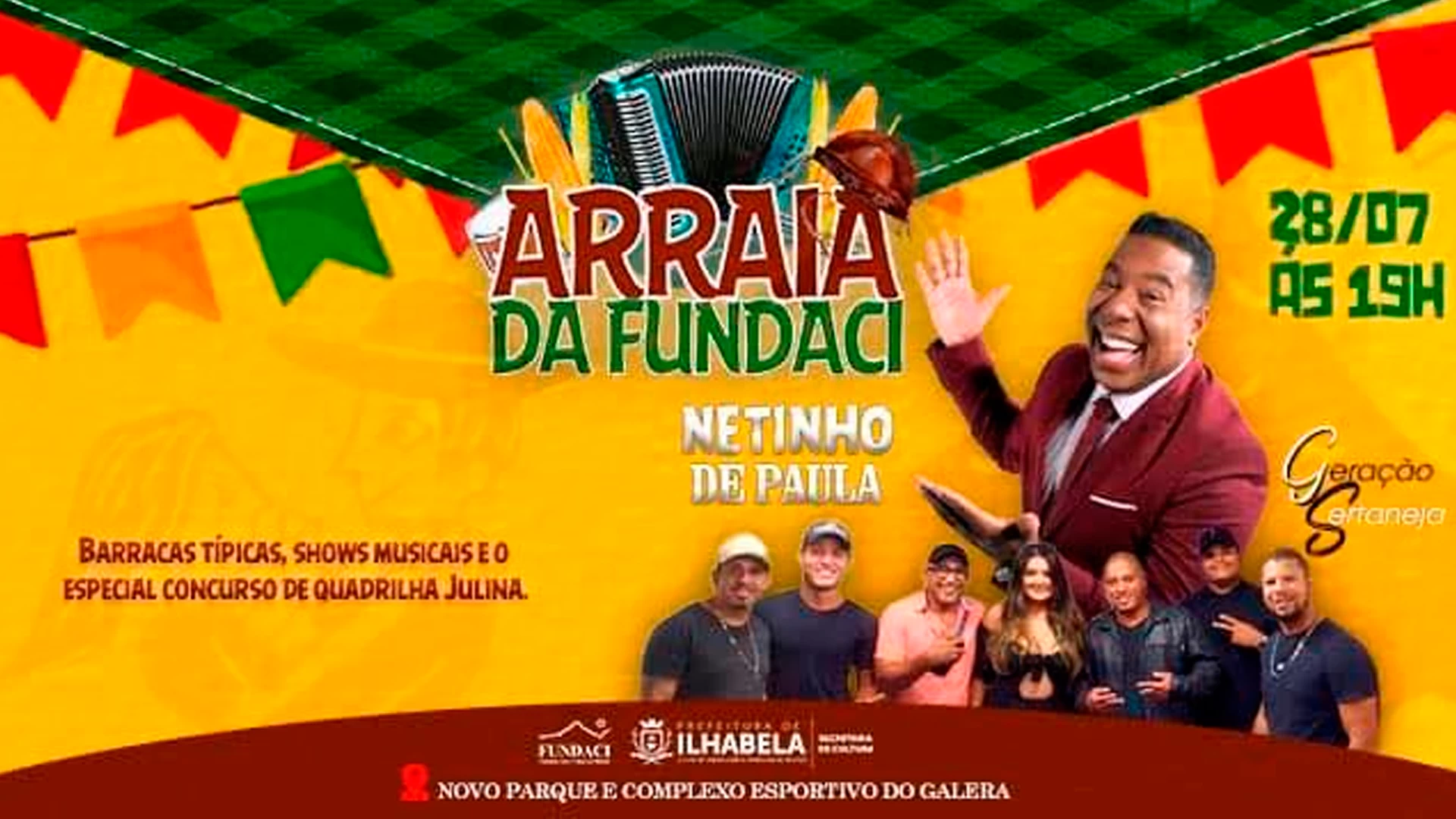 Além do concurso de dança, o Arraiá da Fundaci contará com barracas típicas e a participação especial das Escolas de Samba e Blocos Carnavalescos de Ilhabela. Também haverá shows de artistas locais para entreter o público presente, além da participação especial do cantor Netinho De Paula, com o melhor do Pagode dos anos 90.