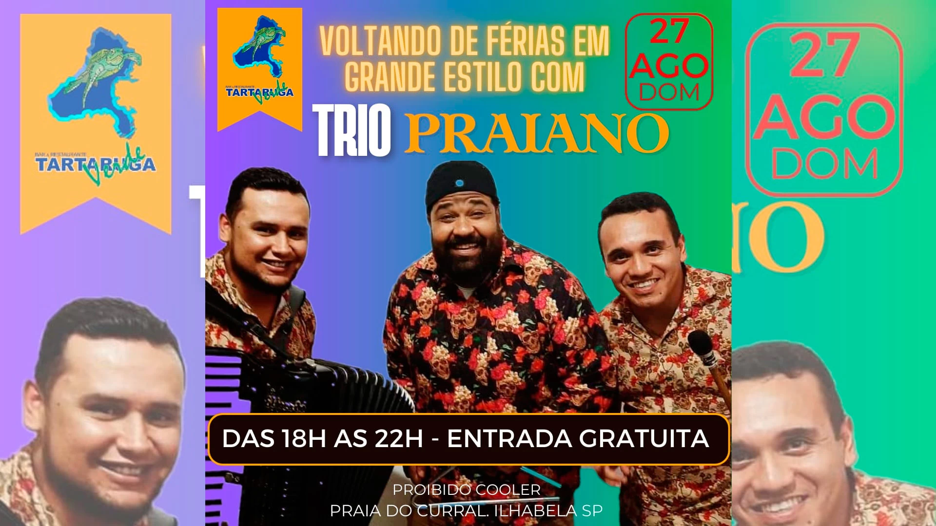 Você não vai ficar de fora neh!? Então é só chegar no próximo domingo, das 18h as 22h e a entrada é gratuita!!! Vem para o melhor do forró de Ilhabela, no Tartaruga Verde!!!
