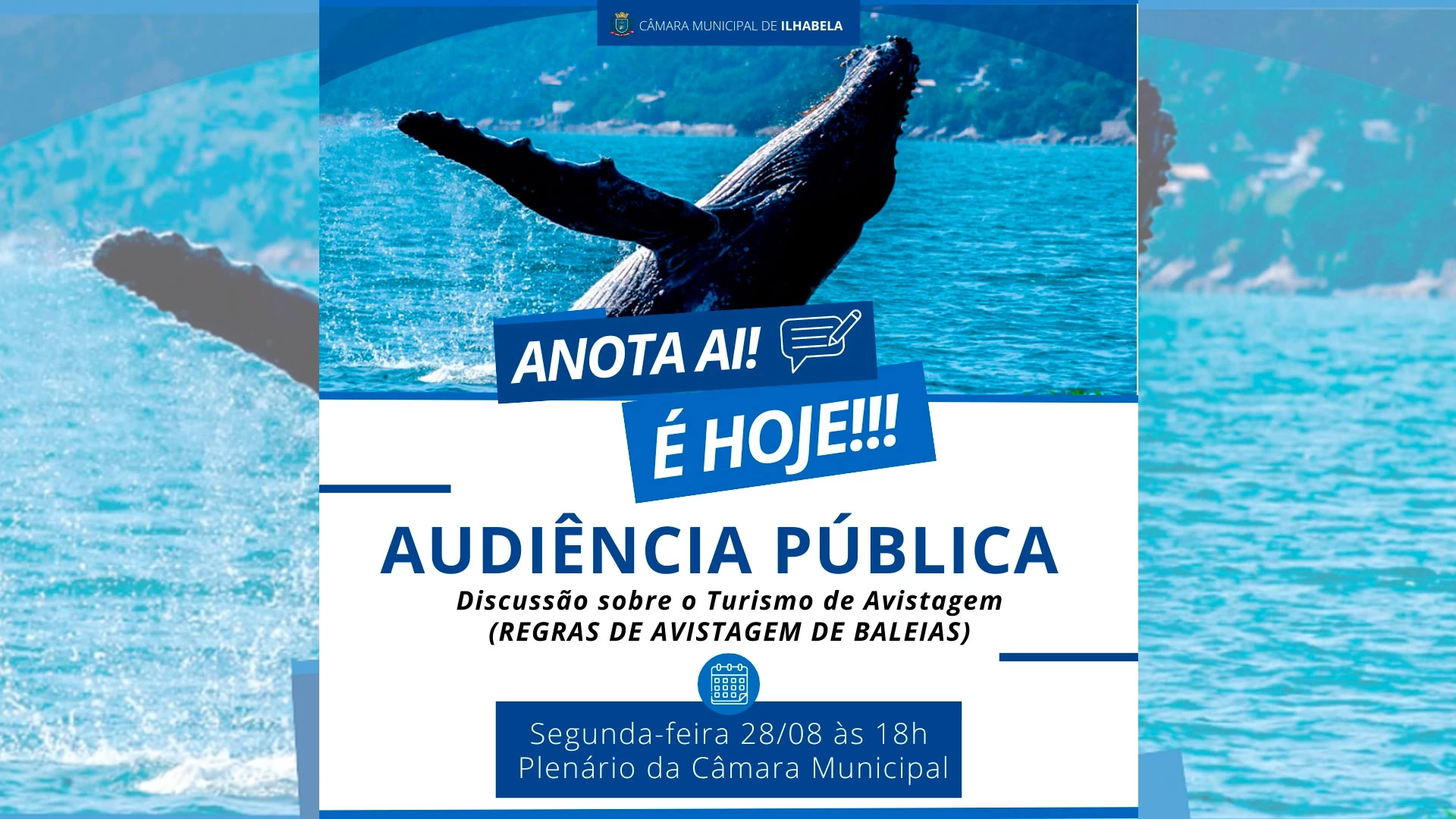 A Audiência foi solicitada através de requerimento assinado pela vereadora Diana Matarazzo Almeida, que em sua justificativa ressaltou que, o turismo de observação de baleias e golfinhos é muito importante para a economia das cidades e para os animais, sendo uma maneira das pessoas conhecerem essas espécies, admirá-las e mudarem seus próprios hábitos para atitudes mais sustentáveis ajudando na conservação. Porém, se esse turismo não for realizado de maneira correta e responsável, pode ser prejudicial, podendo ainda causar graves danos.