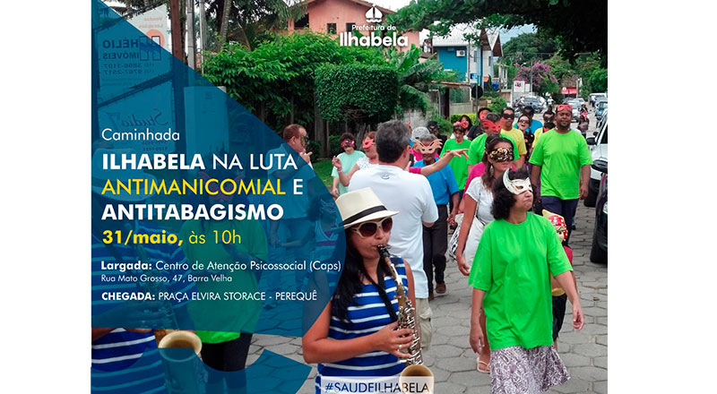 A Prefeitura de Ilhabela, por meio da Secretaria de Saúde, realizará o encerramento do Mês da Luta Antimanicomial com uma caminhada amanhã (31). Com saída do Centro de Atenção Psicossocial (Caps) da Barra Velha, às 10h, e chegada na praça Elvira Storace, no Perequê, a caminhada será aberta à população, pacientes do Caps e familiares.