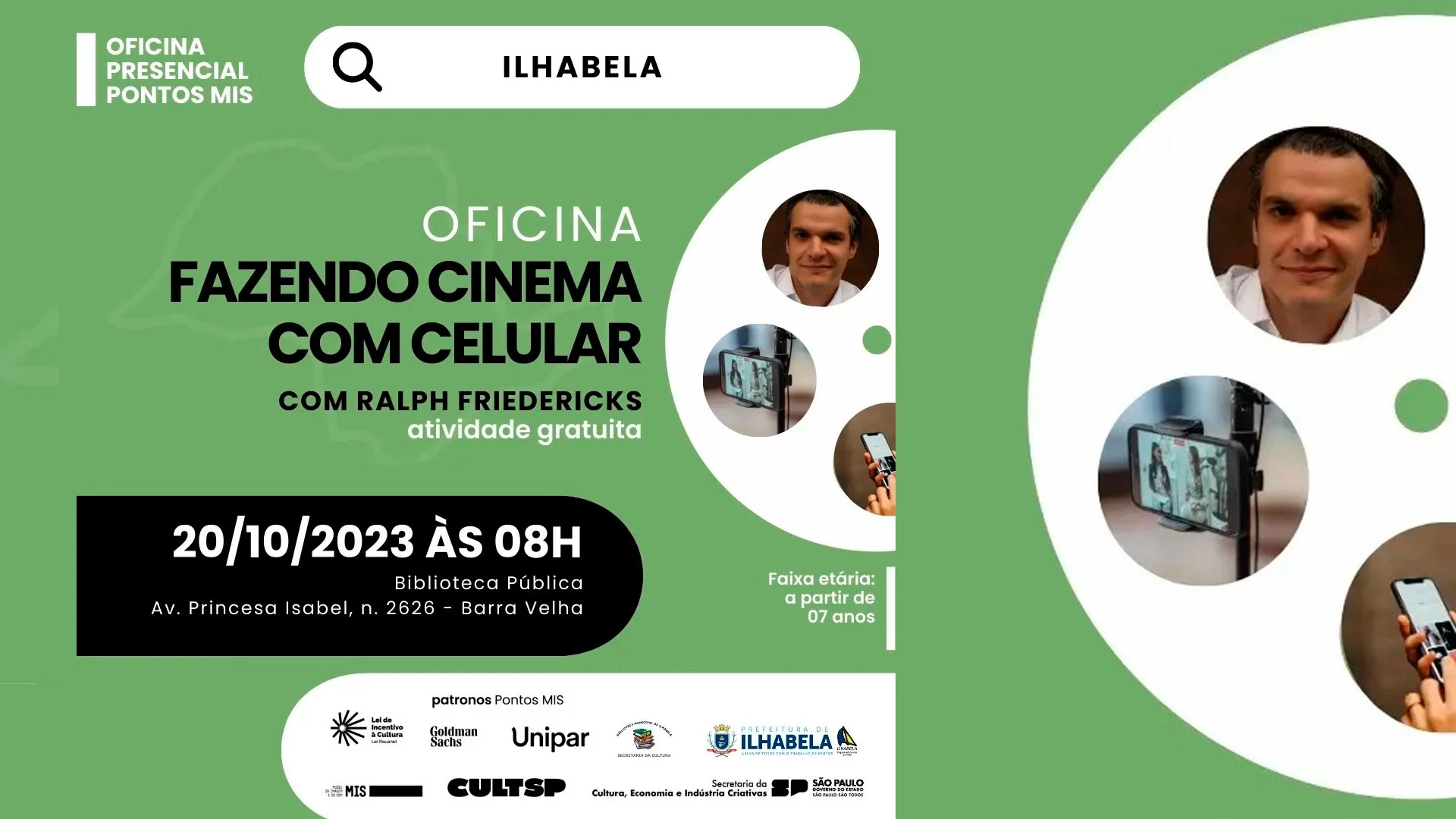 O Pontos Mis de Ilhabela, em parceria com a Biblioteca e Videoteca da Barra Velha, está com inscrições abertas para a Oficina de Cinema Com Celular. As aulas serão realizadas em duas turmas, uma no dia 20 e outra no dia 21 de outubro. O objetivo é estimular a criatividade e a imaginação dos participantes, e as inscrições podem ser feitas pelo telefone (12) 3896-8383.