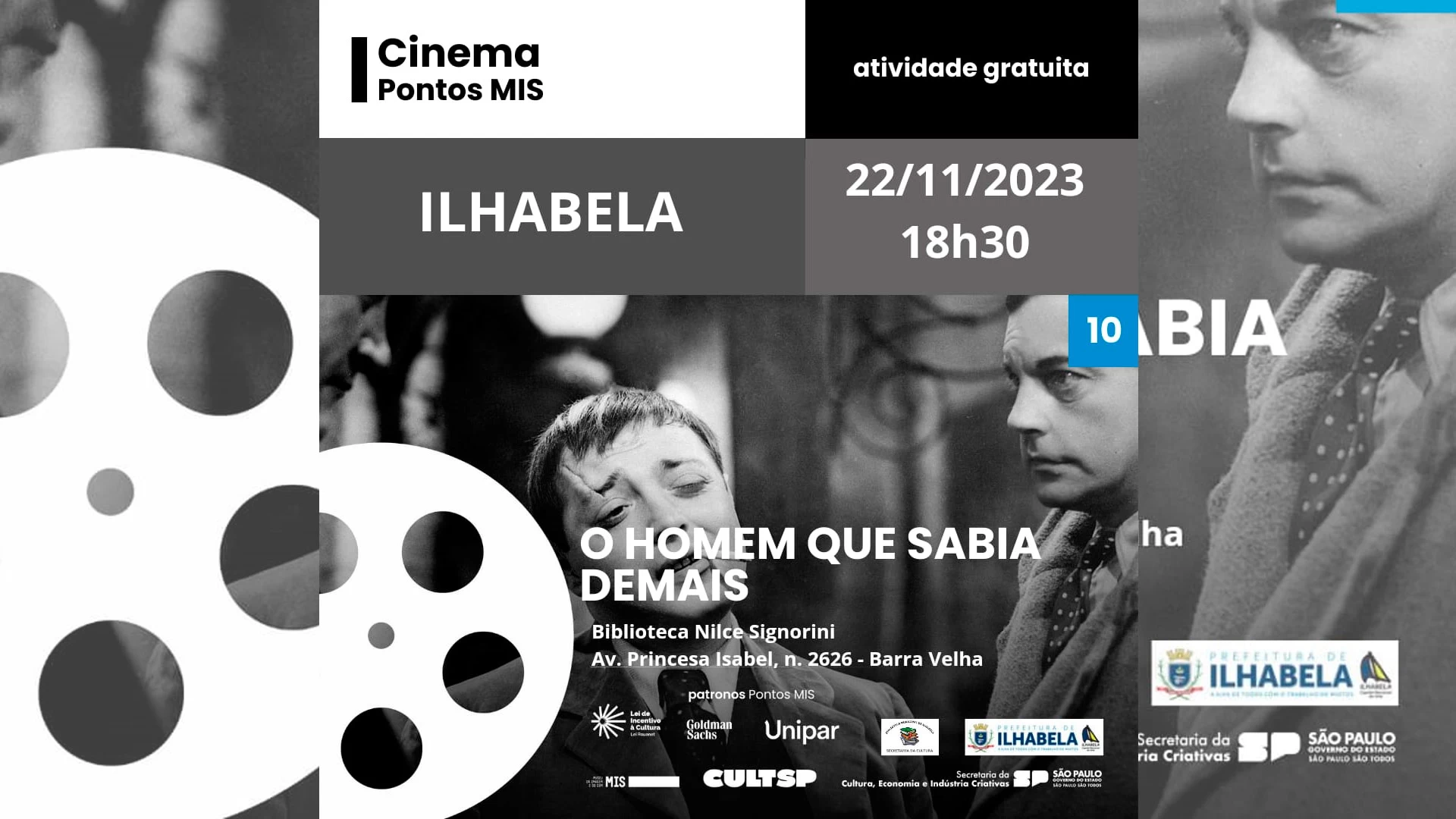 O Cinema Pontos MIS de Ilhabela divulgou a programação do mês de novembro, que tem início nesta quarta-feira (22), na Biblioteca Videoteca da Barra Velha, que fica na avenida Princesa Isabel, 2626.