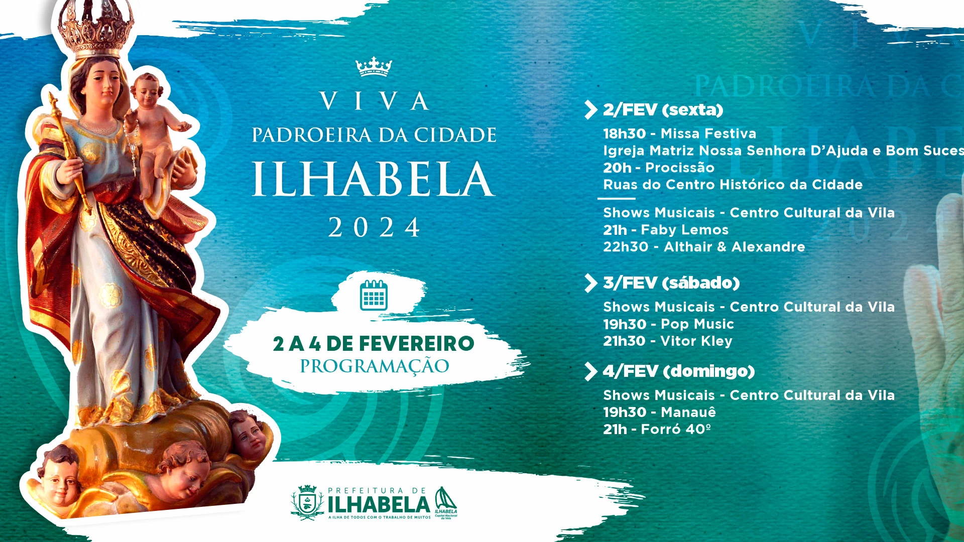 A Festa da Nossa Senhora D’Ajuda e Bonsucesso, uma das mais tradicionais manifestações populares de Ilhabela, começa a partir do dia 2 de fevereiro, às 21h30. Para a festa social, a celebração ocorre no Centro Cultural Waldemar Belizário, na Vila.