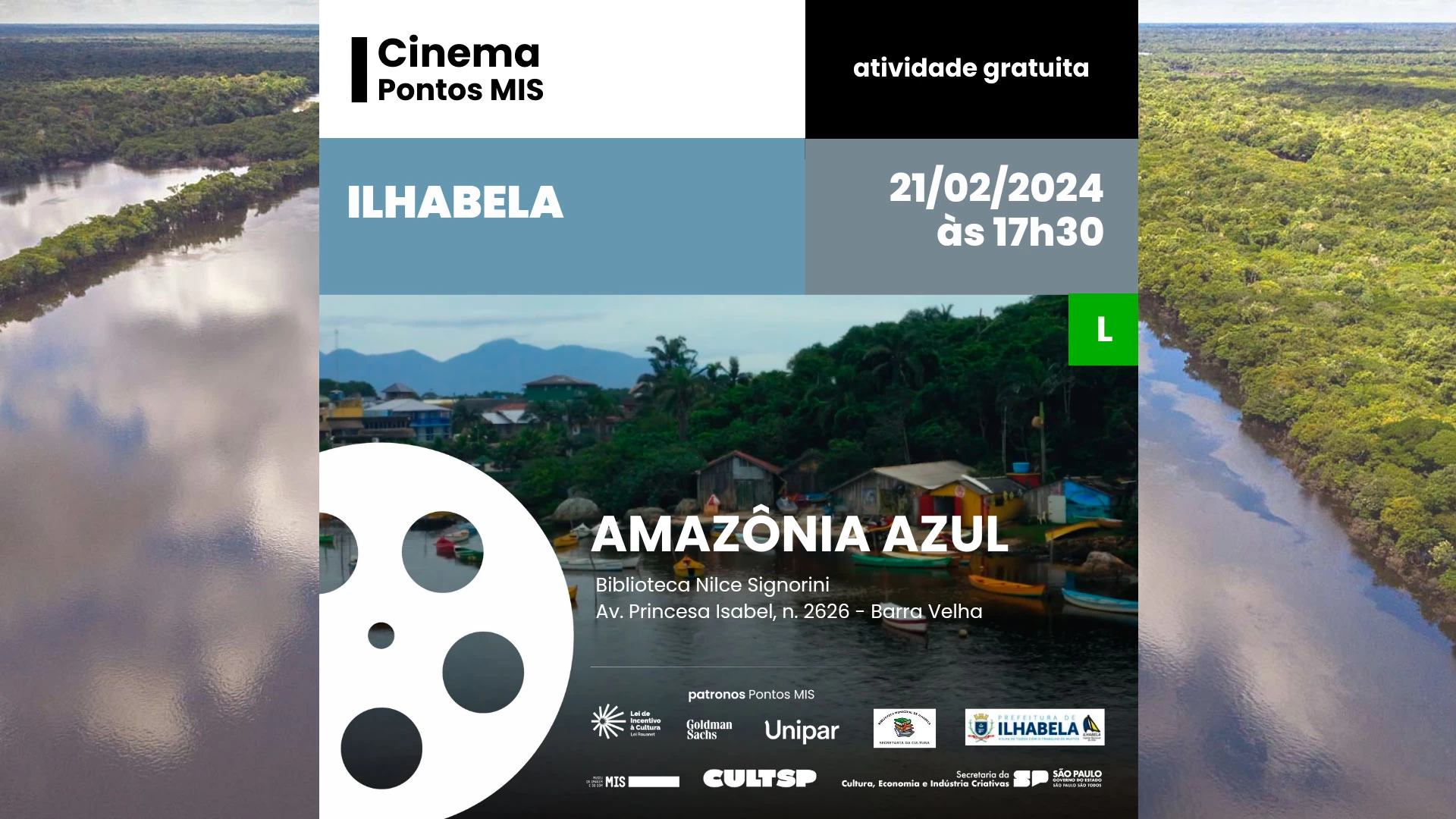 O Cinema Ponto MIS de Ilhabela divulga a programação de fevereiro. Os filmes são exibidos na Biblioteca Videoteca da Barra Velha, que fica na avenida Princesa Isabel, 2626. No dia 21, os filmes escolhidos para exibição são Amazônia Azul (17h30) e Canta Maria (18h30).