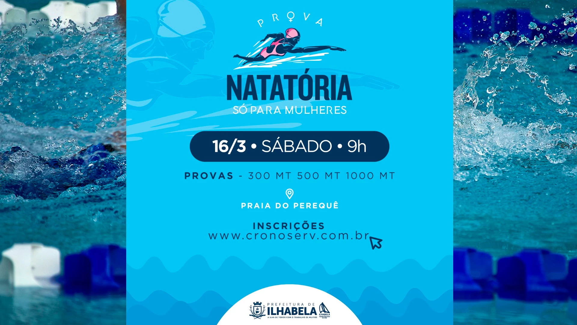 No dia 16 de março, às 9h, a praia do Perequê recebe a Prova Natatória Só Para Mulheres, com provas de 300 metros na categoria Kids (para meninas até 12 anos) e de 500 e 1000 metros para atletas a partir de 13 anos.