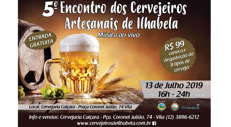 No dia 13 de julho, a Confraria dos Cervejeiros Artesanais de Ilhabela promove a quinta edição de seu encontro anual, em um evento aberto ao público que tem o objetivo de estimular a produção local, fomentar a atividade em Ilhabela e apresentar aos moradores e visitantes as cervejas produzidas pelos participantes do grupo.