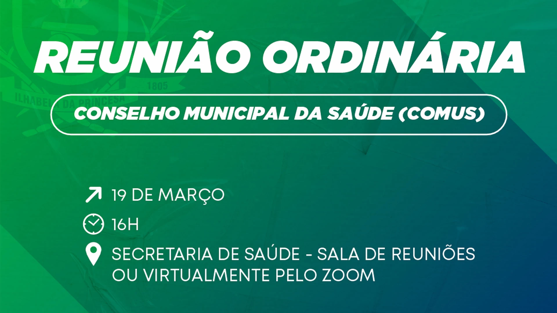 O Conselho Municipal de Saúde de Ilhabela (COMUS) convoca seus conselheiros para uma reunião ordinária na próxima terça-feira (19), às 16h.