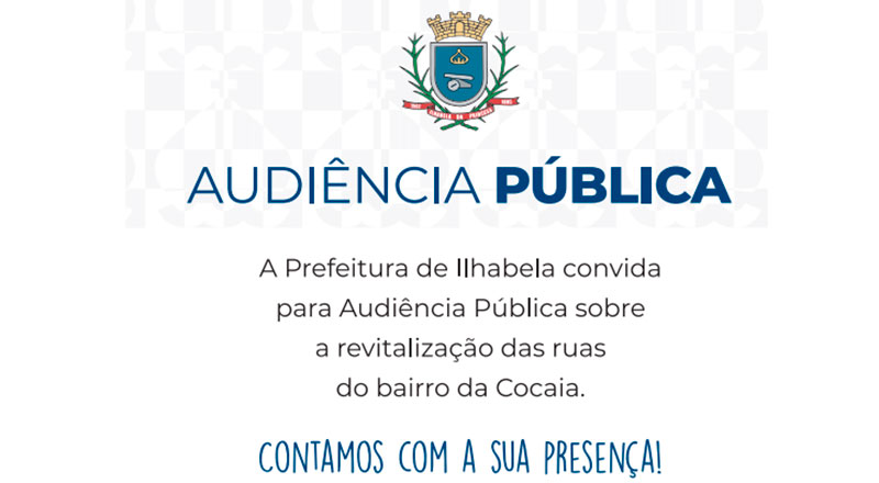 A Prefeitura de Ilhabela, por meio da Secretaria de Planejamento Urbano, Obras e Habitação, realiza na próxima terça-feira (23), as 18h no Galpão das Artes – Cocaia, a Audiência Pública referente a “Revitalização de ruas no bairro da Cocaia”.