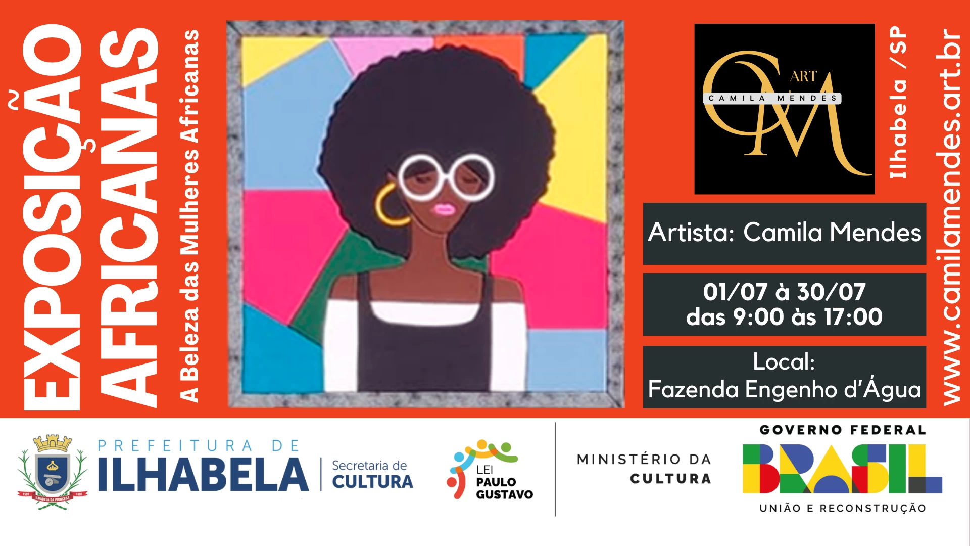 A exposição "Africanas", inaugurada nesta segunda-feira (01), na Fazenda do Engenho d’Água, em frente à Praia do Engenho, em Ilhabela (SP), ficará em exibição até 30 de julho de 2024, apresentando uma coleção de 30 quadros confeccionados com a técnica de Patchwork Embutido pela artista Camila Mendes.