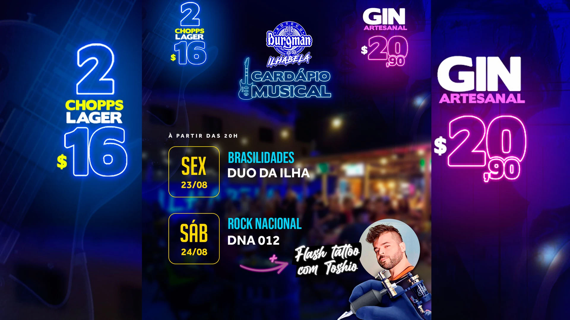 24/08 (Sábado) - DNA 012 - Rock Nacional + Flash Tattoo com Toshio