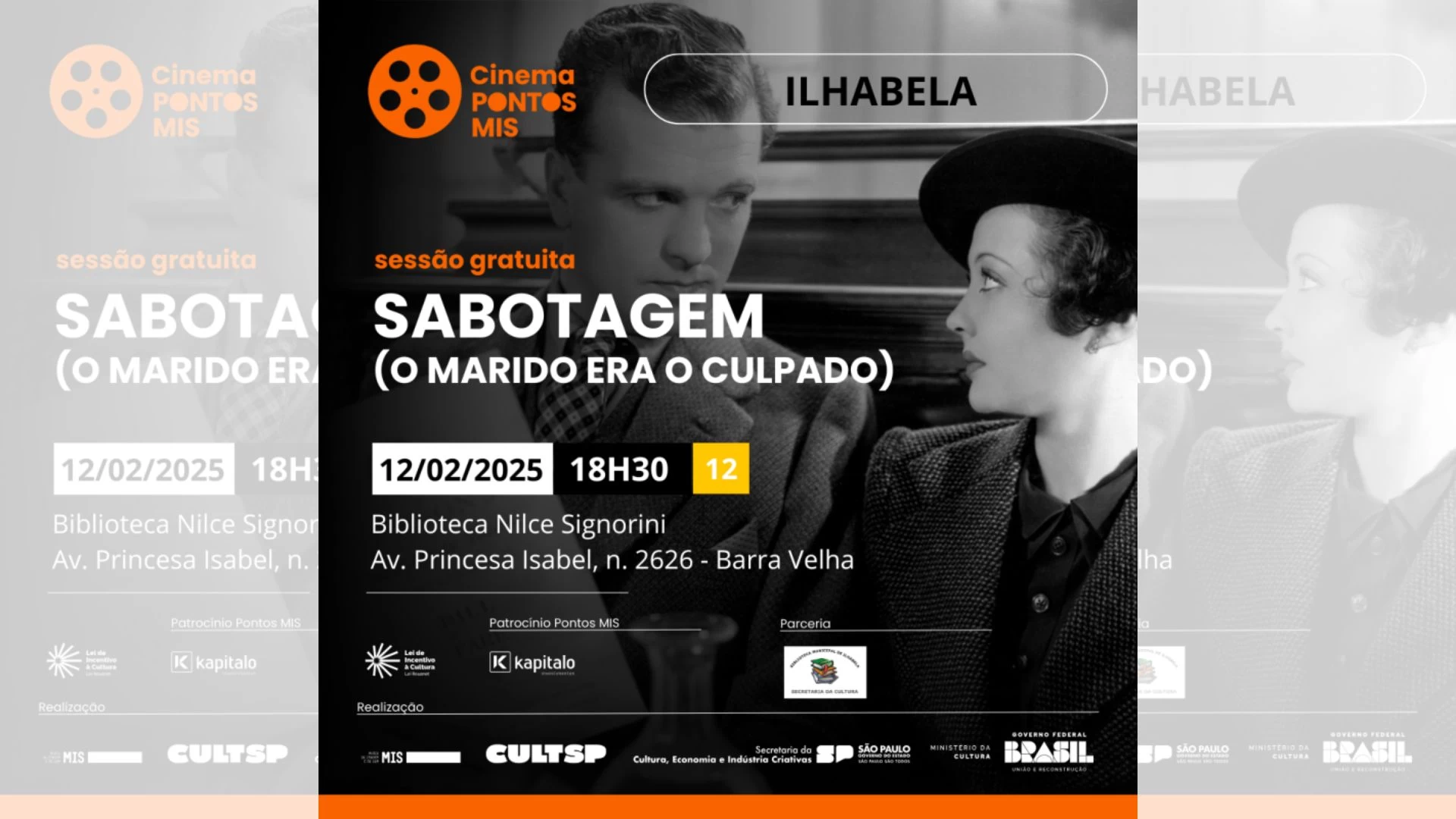 Durante o mês de fevereiro, o Pontos MIS de Ilhabela convida todos os amantes da sétima arte a explorarem o universo de suspense do mestre Alfred Hitchcock.