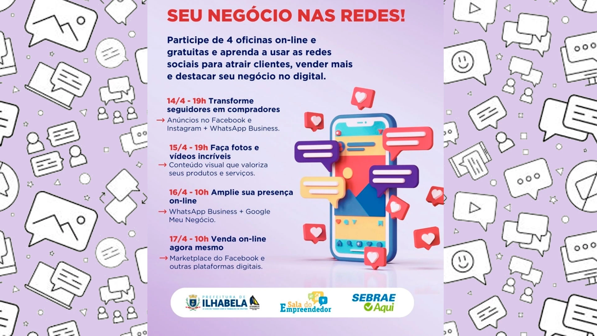 A Prefeitura de Ilhabela, por meio da Secretaria de Desenvolvimento Econômico e Turismo e em parceria com o Posto Sebrae Aqui, oferece, durante o mês de abril, cursos on-line de empreendedorismo para a população.