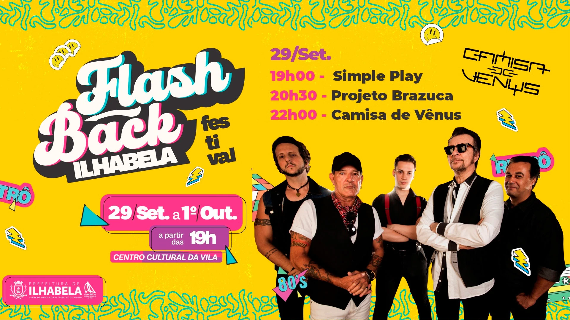 O Festival Flashback de Ilhabela, evento que promete animar a baixa temporada da cidade, ocorre entre os dias 29 de setembro e 1º de outubro no Centro Cultural Waldemar Belisário, na Vila. O festival encerra as comemorações dos 218 anos de Emancipação Político-Administrativa da cidade e traz uma programação repleta de músicas que marcaram época.