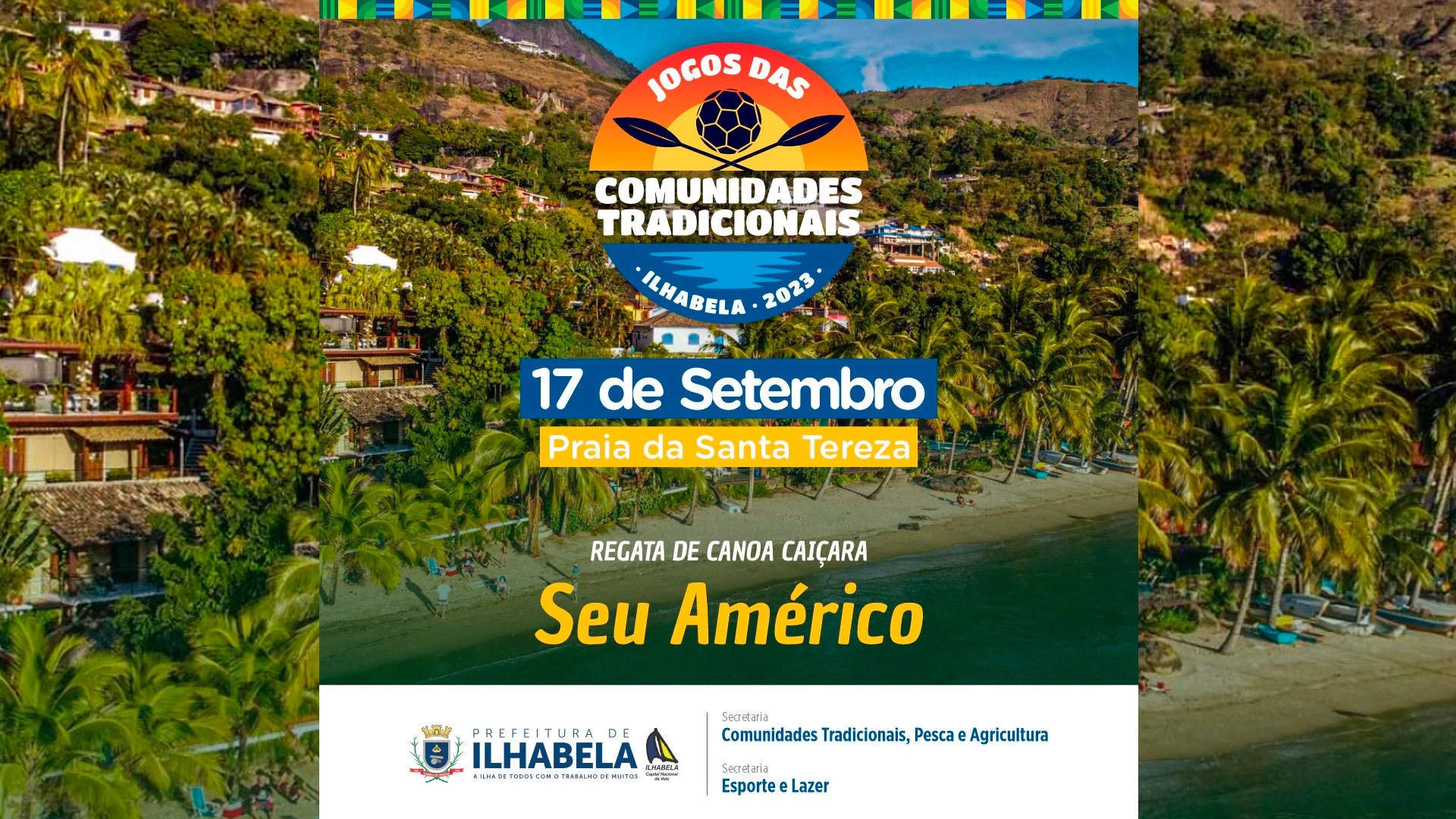 A Prefeitura de Ilhabela realiza neste domingo (17) a tradicional Regata de Canoa Caiçara “Seu Américo”, nas categorias masculino e feminino, sendo a largada do masculino em frente à Fazenda Engenho D’Água às 10h e a chegada na praia de Santa Tereza. A largada e chegada da categoria feminina será na Praia Santa Tereza, logo após a chegada do masculino e na sequência as crianças também poderão participar.